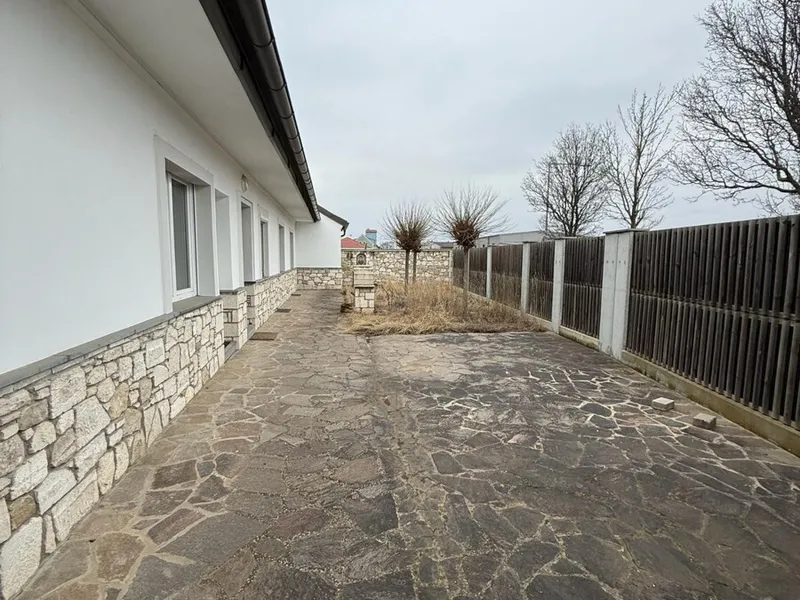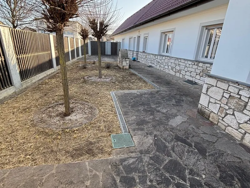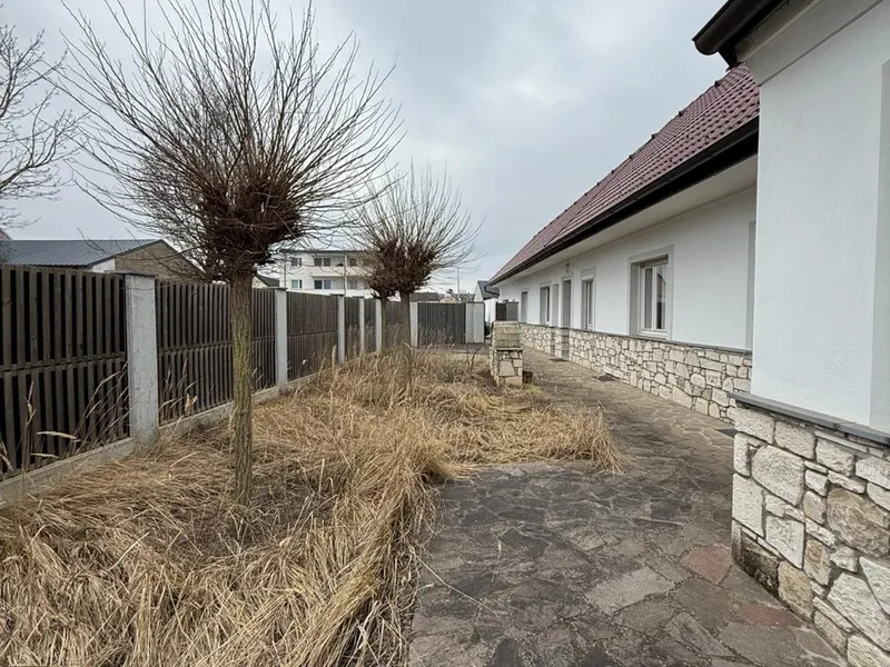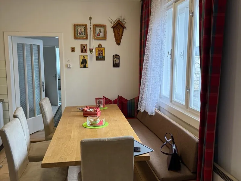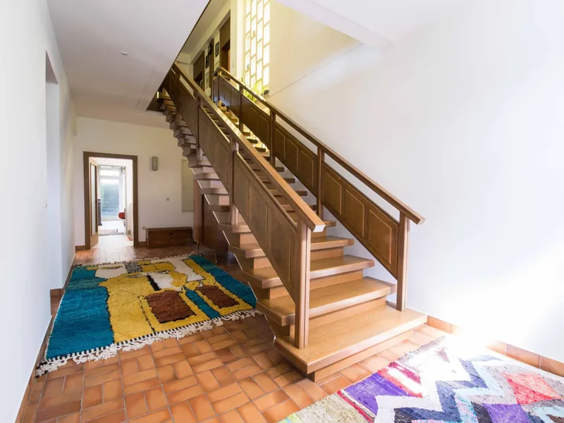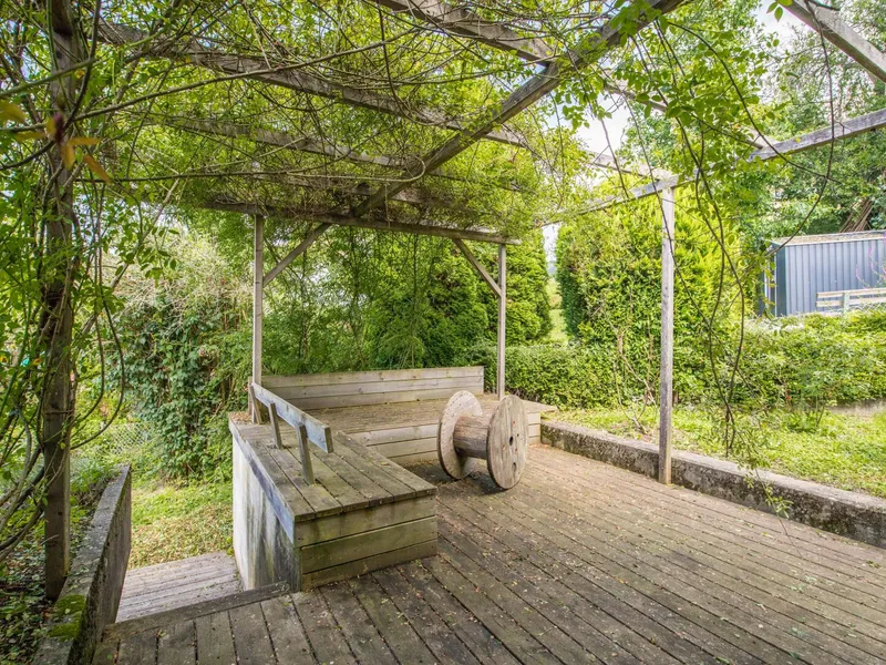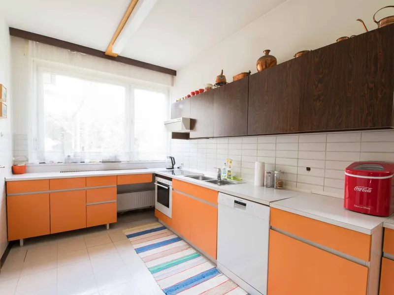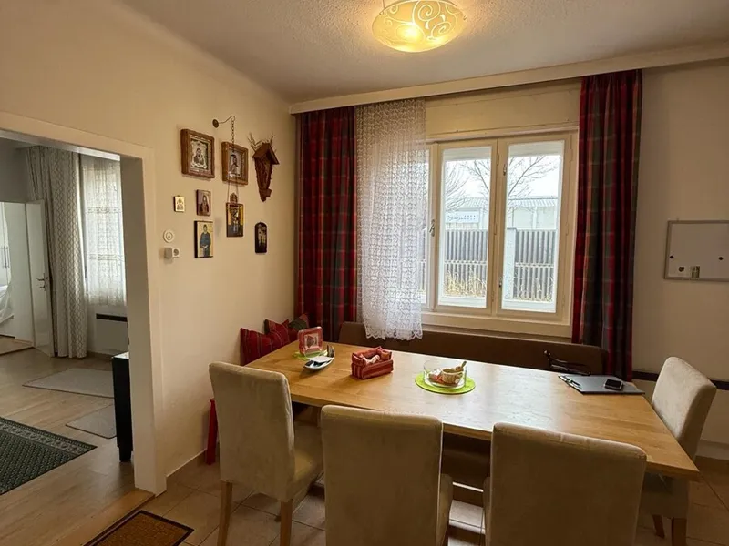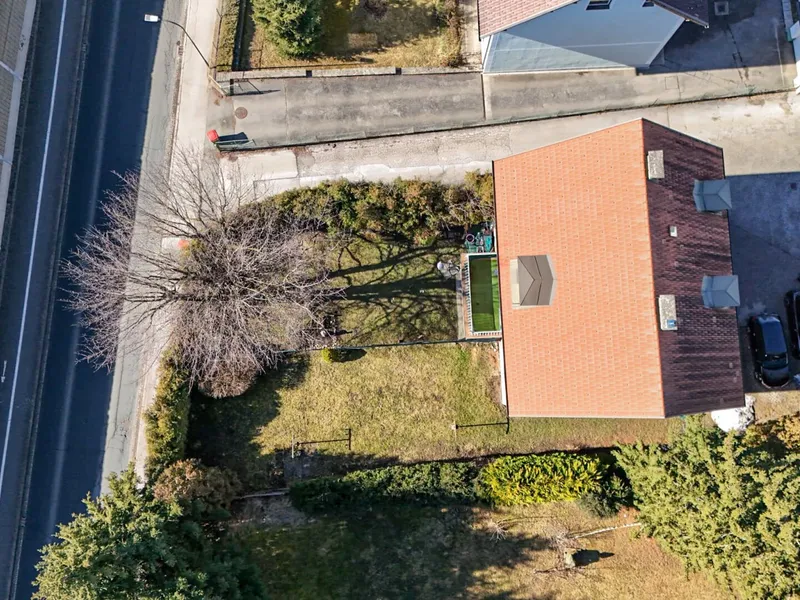 Modernisiertes Einfamilienhaus im traditionellen Stil mit Ziegelfassade und großem Garten. Auf dem Dach befinden sich Solarpaneele, und im gepflegten Außenbereich laden Terrasse und Grünflächen zum Verweilen ein.