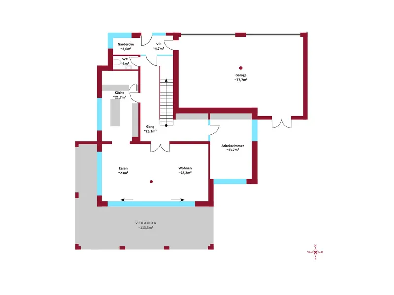 ca. 95,00 m² Nutzfläche 3,5 Zimmer