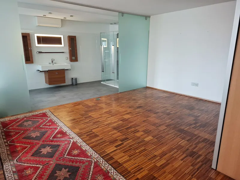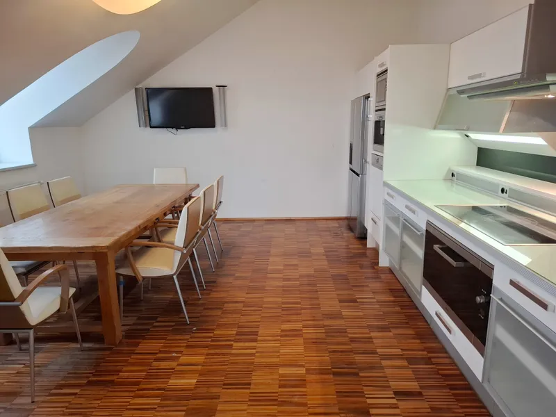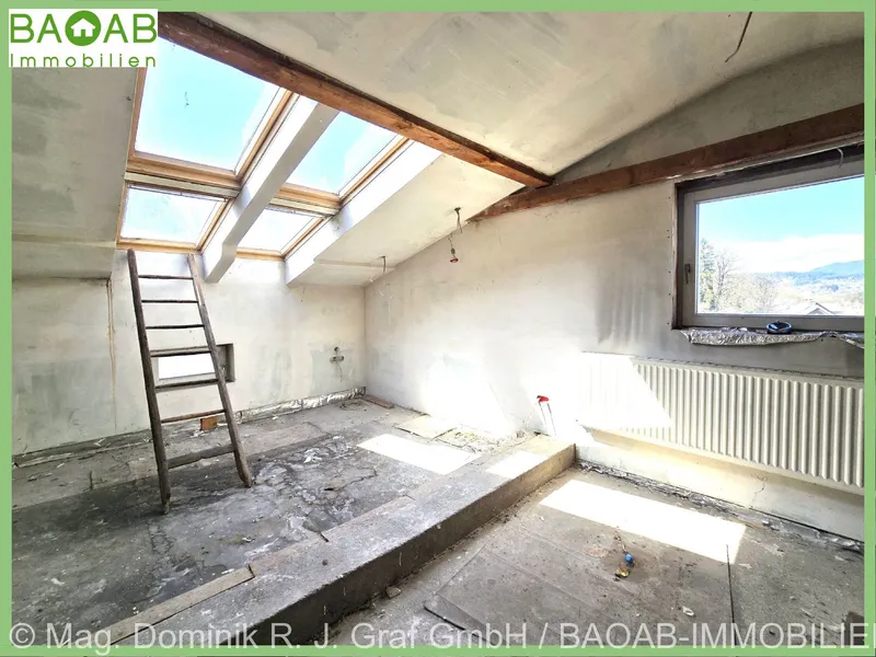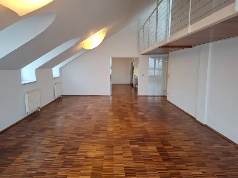 bis zu 6m Raumhöhe Dachterrasse Blick auf Burgruhine Stellplatz verfügbar freier Mietzins