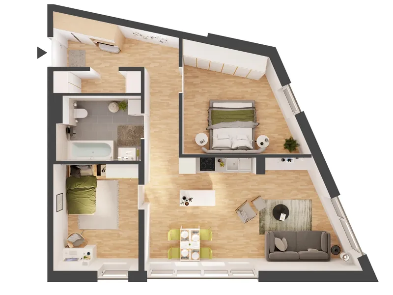 ca. 60,60 m² Nutzfläche 2 Zimmer