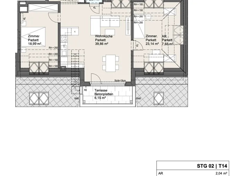 ca. 61,29 m² Nutzfläche 2 Zimmer