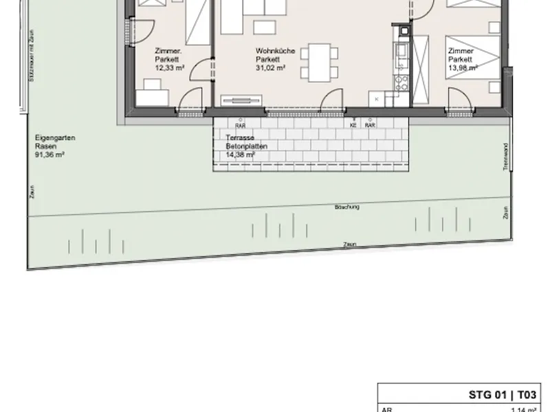 ca. 52,38 m² Nutzfläche 2 Zimmer