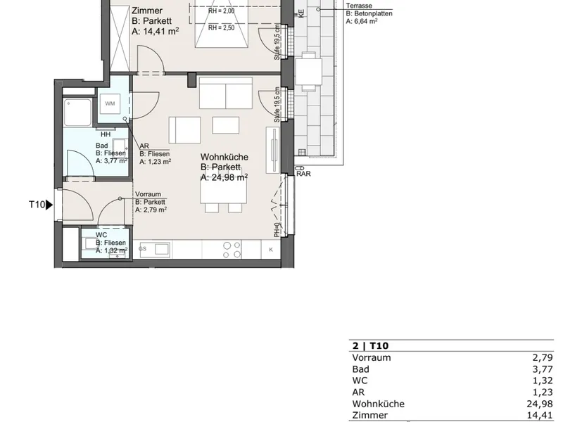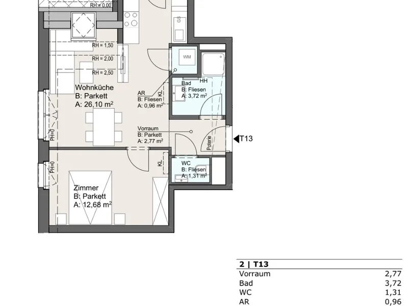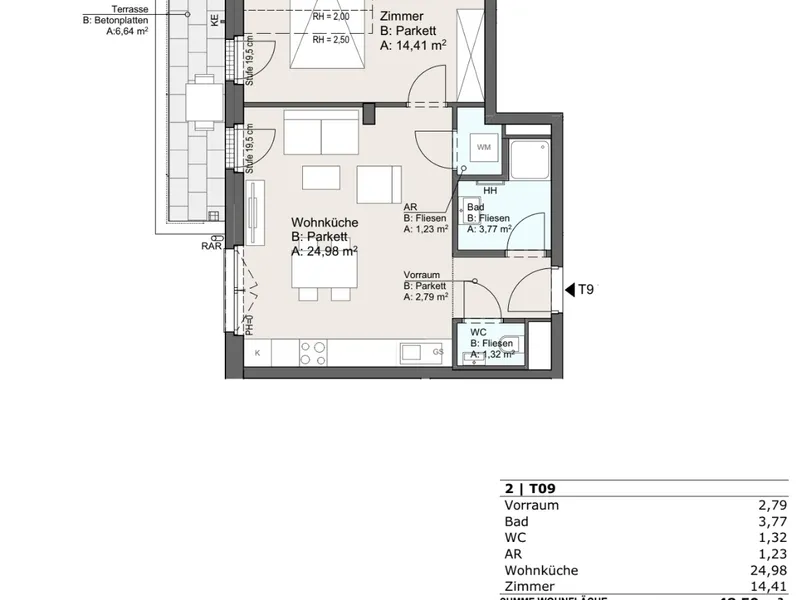 ca. 47,27 m² Wohnfläche 2 Zimmer
