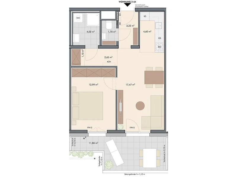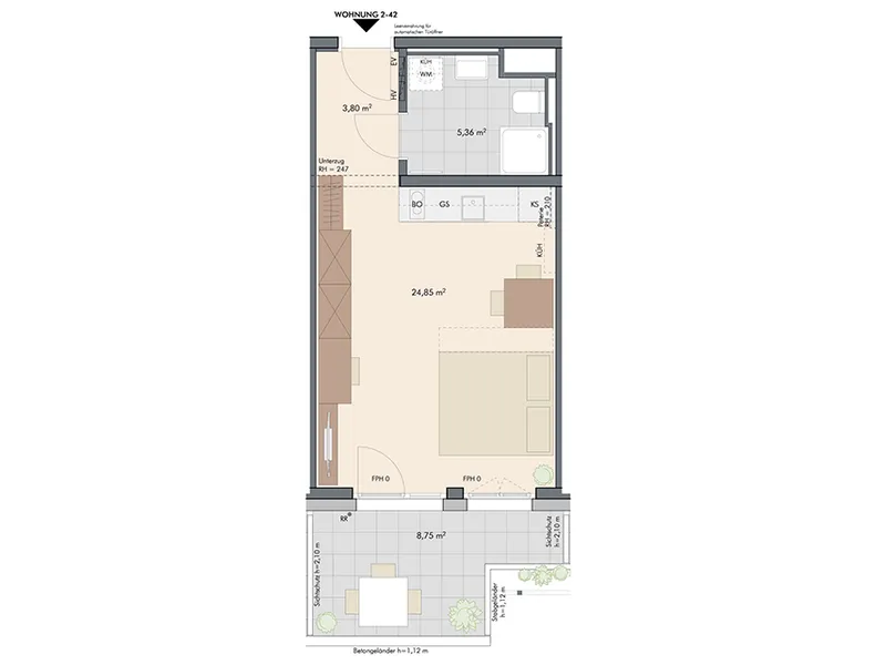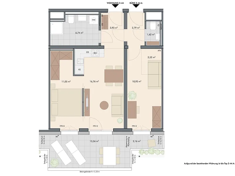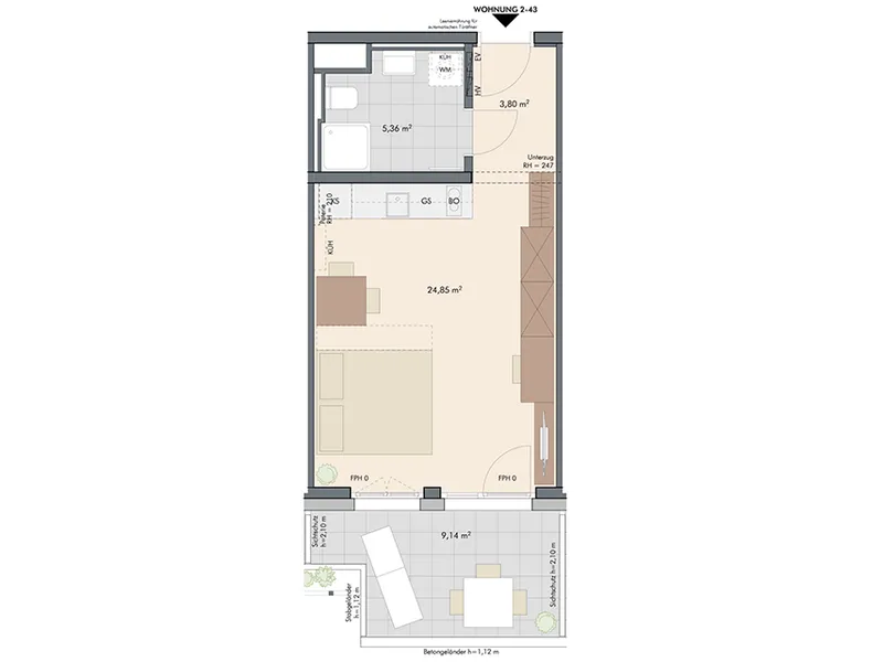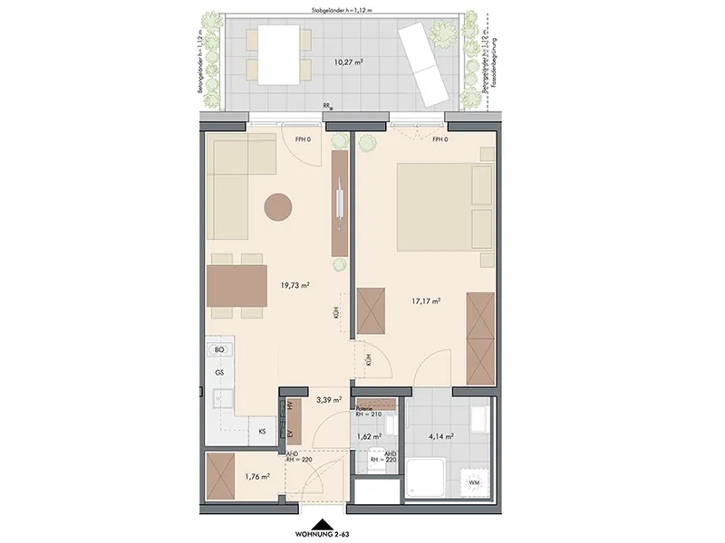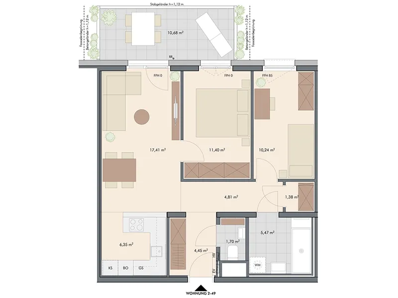 ca. 49,43 m² Wohnfläche 2 Zimmer