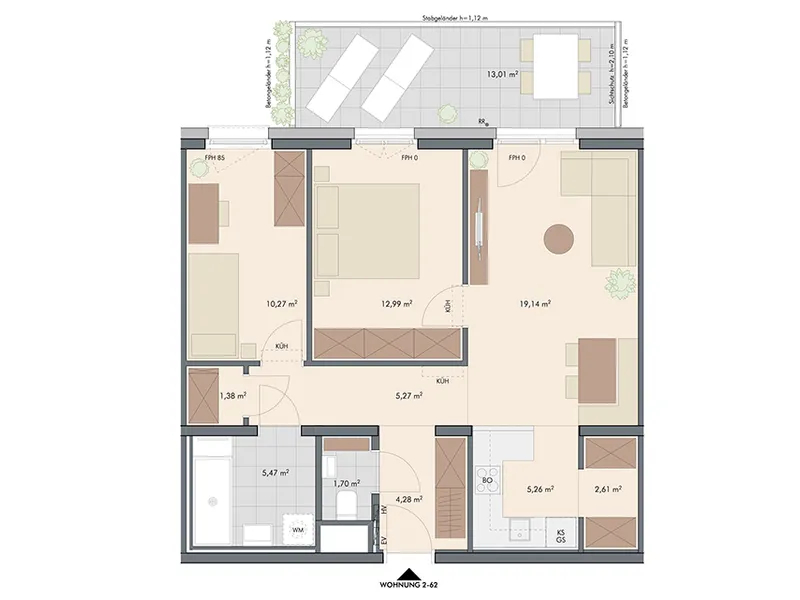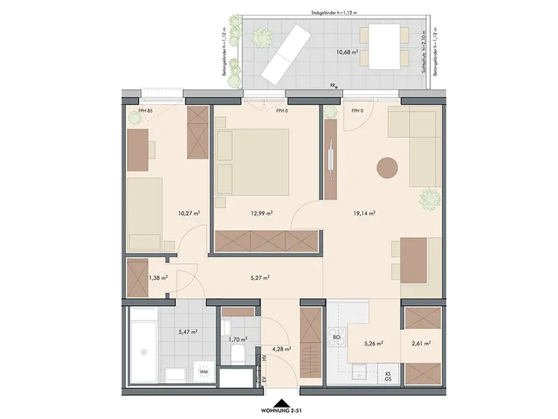 ca. 51,08 m² Wohnfläche 2 Zimmer