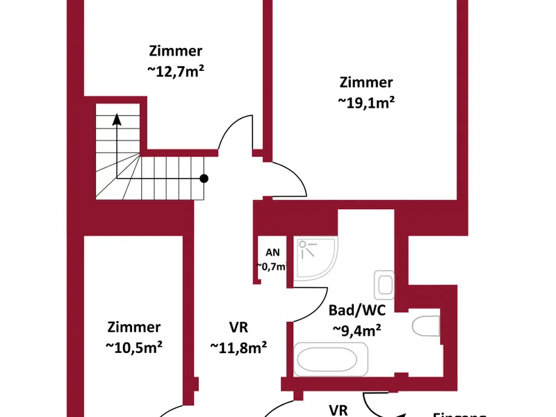 ca. 70,40 m² Wohnfläche 3 Zimmer