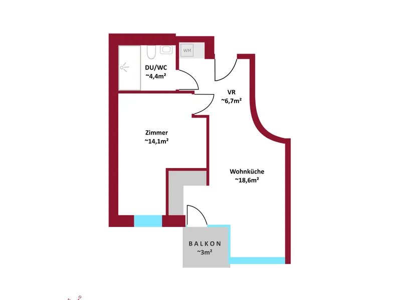 ca. 51,02 m² Wohnfläche 2 Zimmer