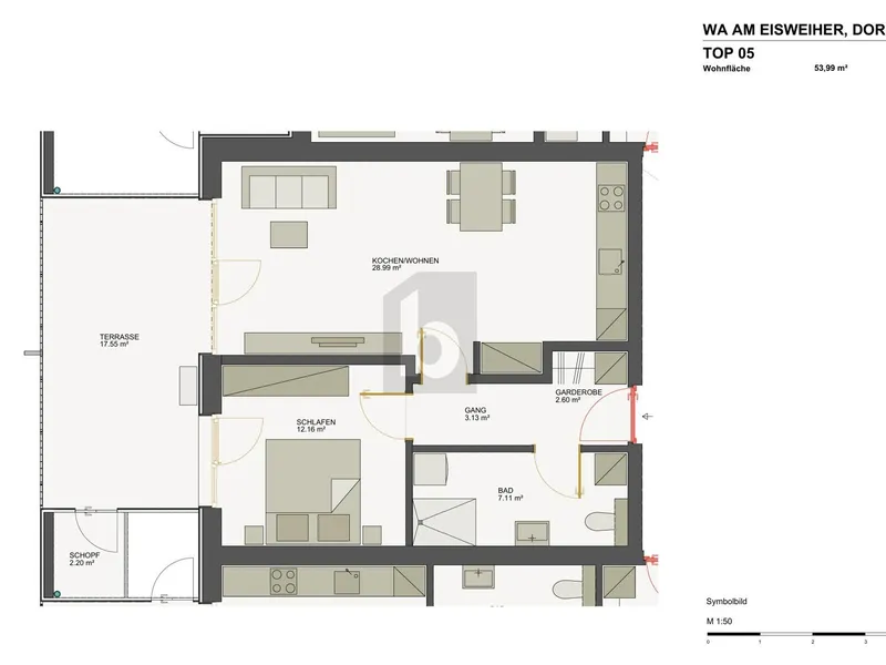 ca. 54,00 m² Wohnfläche 2 Zimmer
