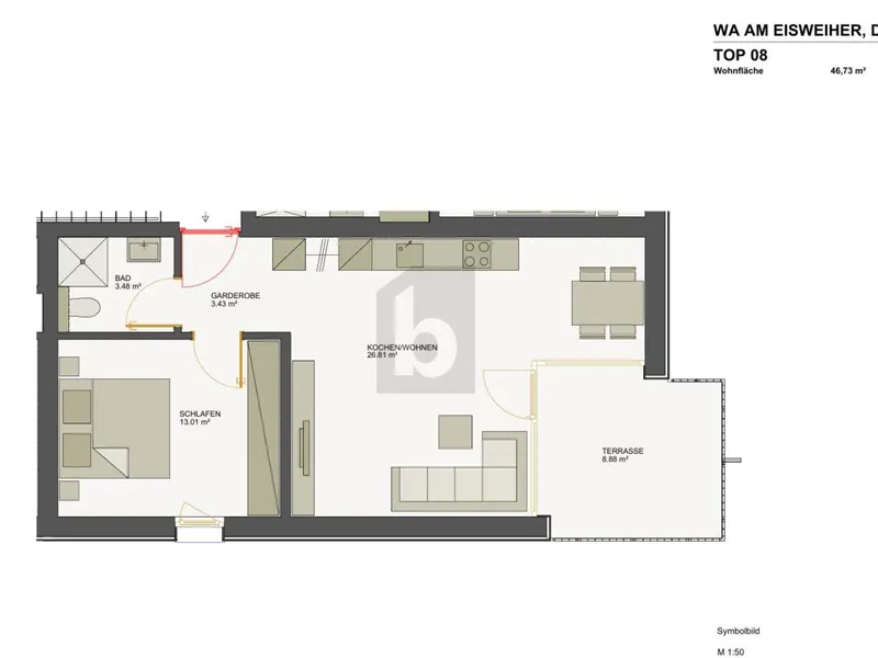 ca. 46,00 m² Wohnfläche 2 Zimmer