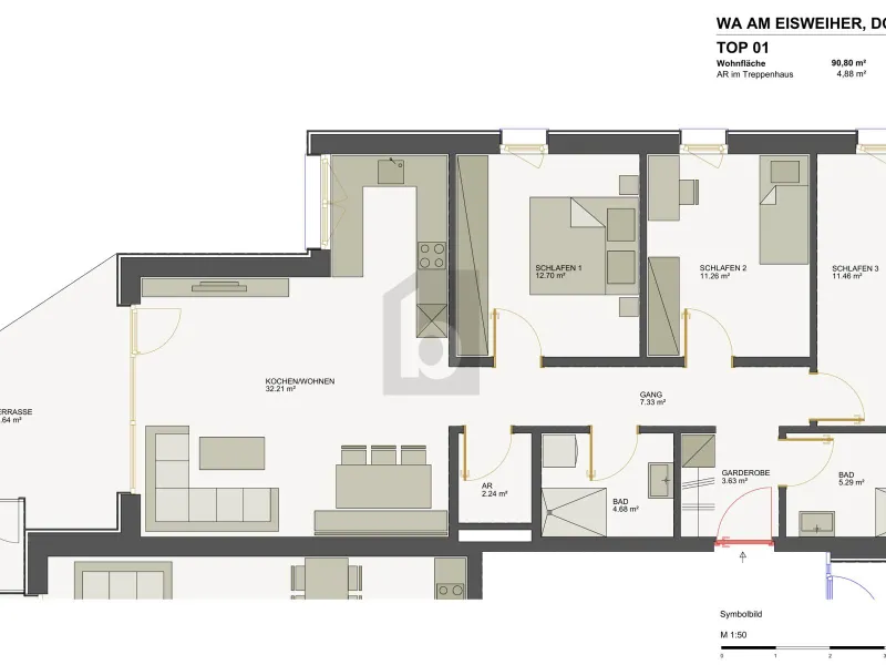 ca. 90,00 m² Nutzfläche 3 Zimmer
