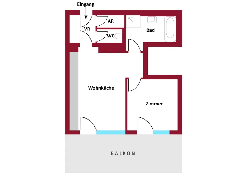 ca. 40,79 m² Wohnfläche 2 Zimmer