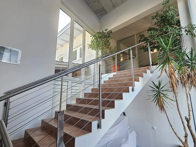 Das Gebäude beeindruckt nicht nur durch seine Größe, sondern auch durch seine praktische Ausstattung. Ein Lastenaufzug und ein Personenaufzug erleichtern den Transport von Waren und den Zugang für Kunden und Mitarbeiter. Auch für ausreichend Parkplätze ist gesorgt, so dass Ihre Geschäftspartner und Kunden bequem anreisen können.