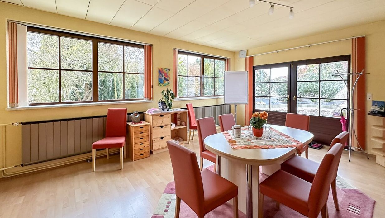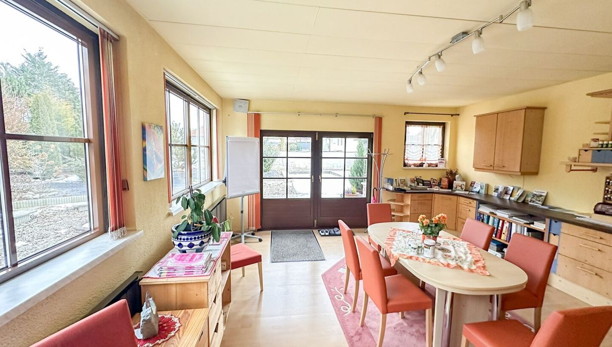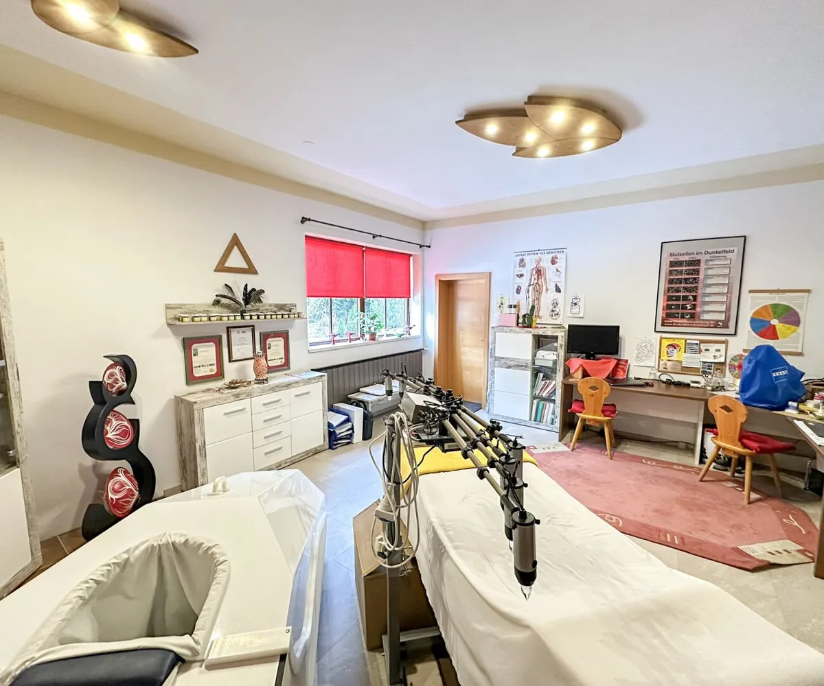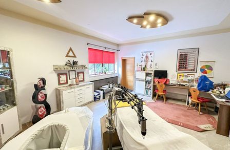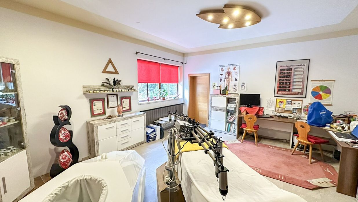 Ein echtes Alleinstellungsmerkmal ist der große Eigengarten mit rund 547 qm. Damit entsteht ein außergewöhnlich großzügiger Freiraum, der nicht nur für die Wohnnutzung sondern auch im Praxis- oder Bürobetrieb einen spürbaren Mehrwert liefert - etwa als Pausenbereich im Grünen, als ruhige Wartezone oder als Ergänzung bei Tätigkeiten, die von Außenraum profitieren.