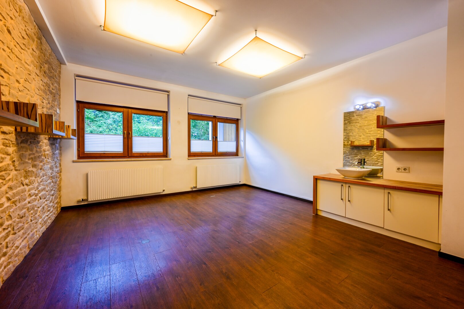 - zahlreiche luftige und lichtdurchflutete Räume mit großen Fensterfronten