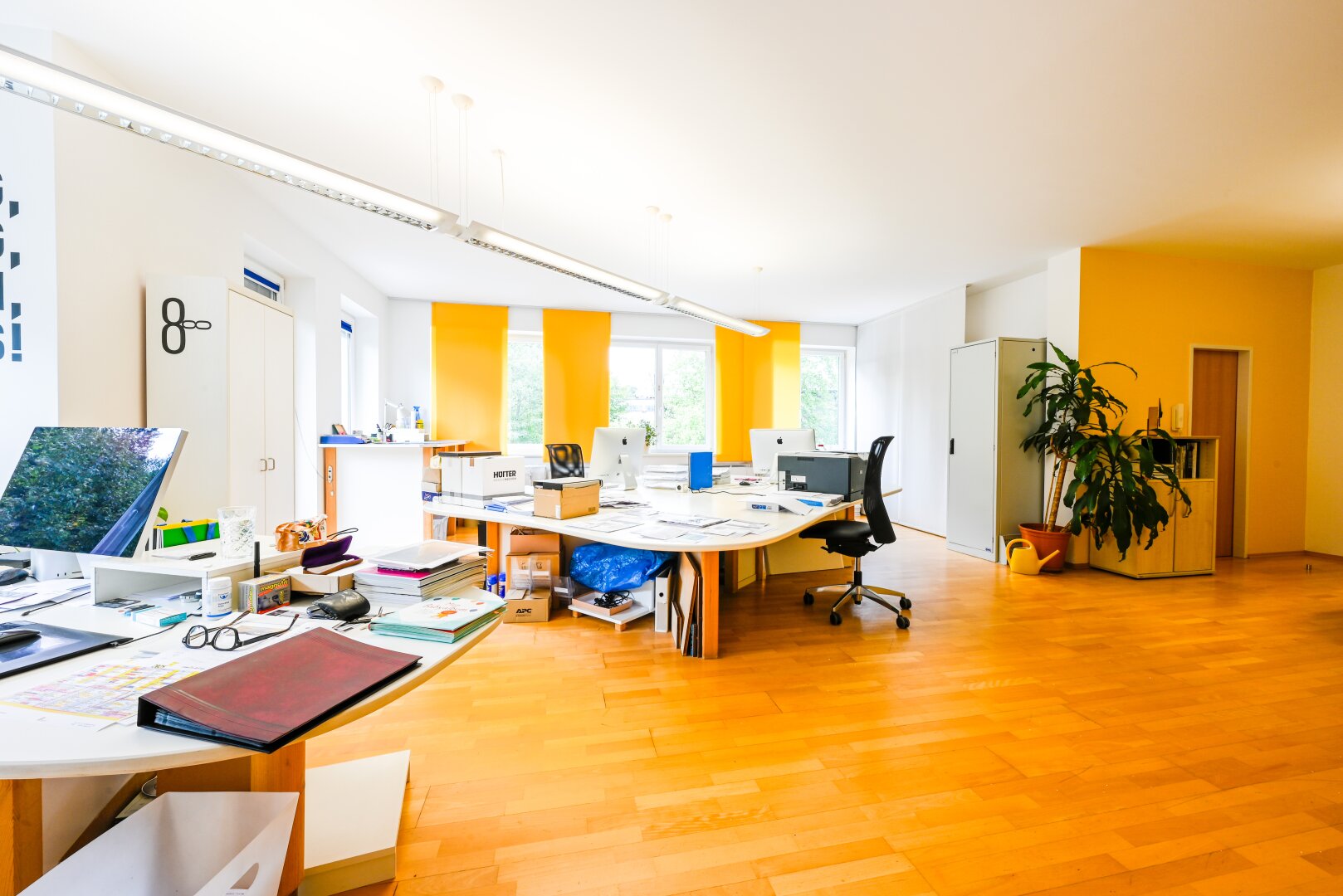 Der Personenaufzug bietet Ihnen und Ihren Kunden einen barrierefreien Zugang, und die bodenliegenden Steckdosen ermöglichen Ihnen eine flexible Raumgestaltung, die sich an Ihre Bedürfnisse anpasst. Der außenliegende Sonnenschutz sorgt dafür, dass Sie auch an sonnigen Tagen eine angenehme Temperatur in Ihren Räumen halten können.