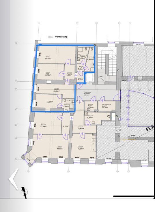 Die repräsentative Bürofläche wird vermietet. Der Zustand des Objektes ist sehr attraktiv und zeitgemäß, obwohl wir uns in historischem Altbau befinden.