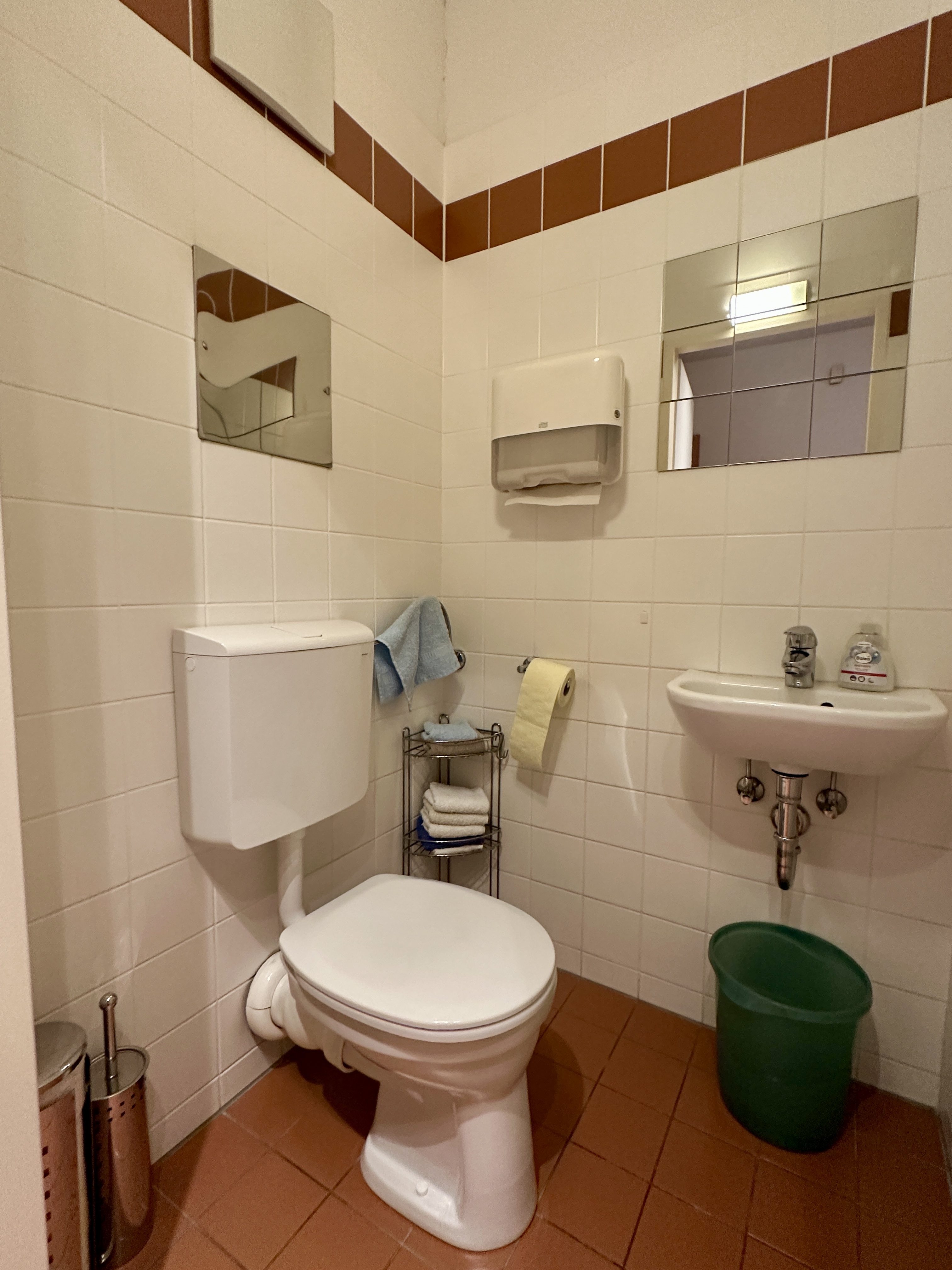 Die Immobilie verfügt über zwei WCs, ein Badezimmer (mit Badewanne) und einen kleinen Abstellraum. Der Personenaufzug und die Tiefgarage machen den Zugang zu Ihrem neuen Büro oder Ihrer Praxis besonders komfortabel.