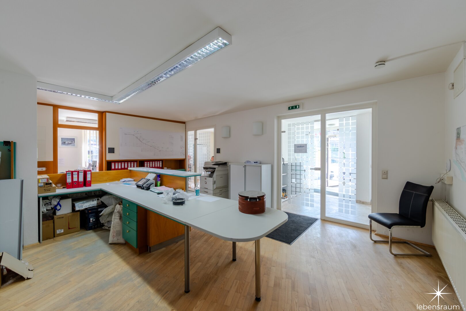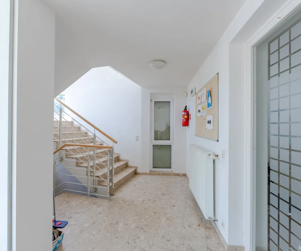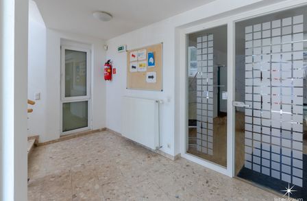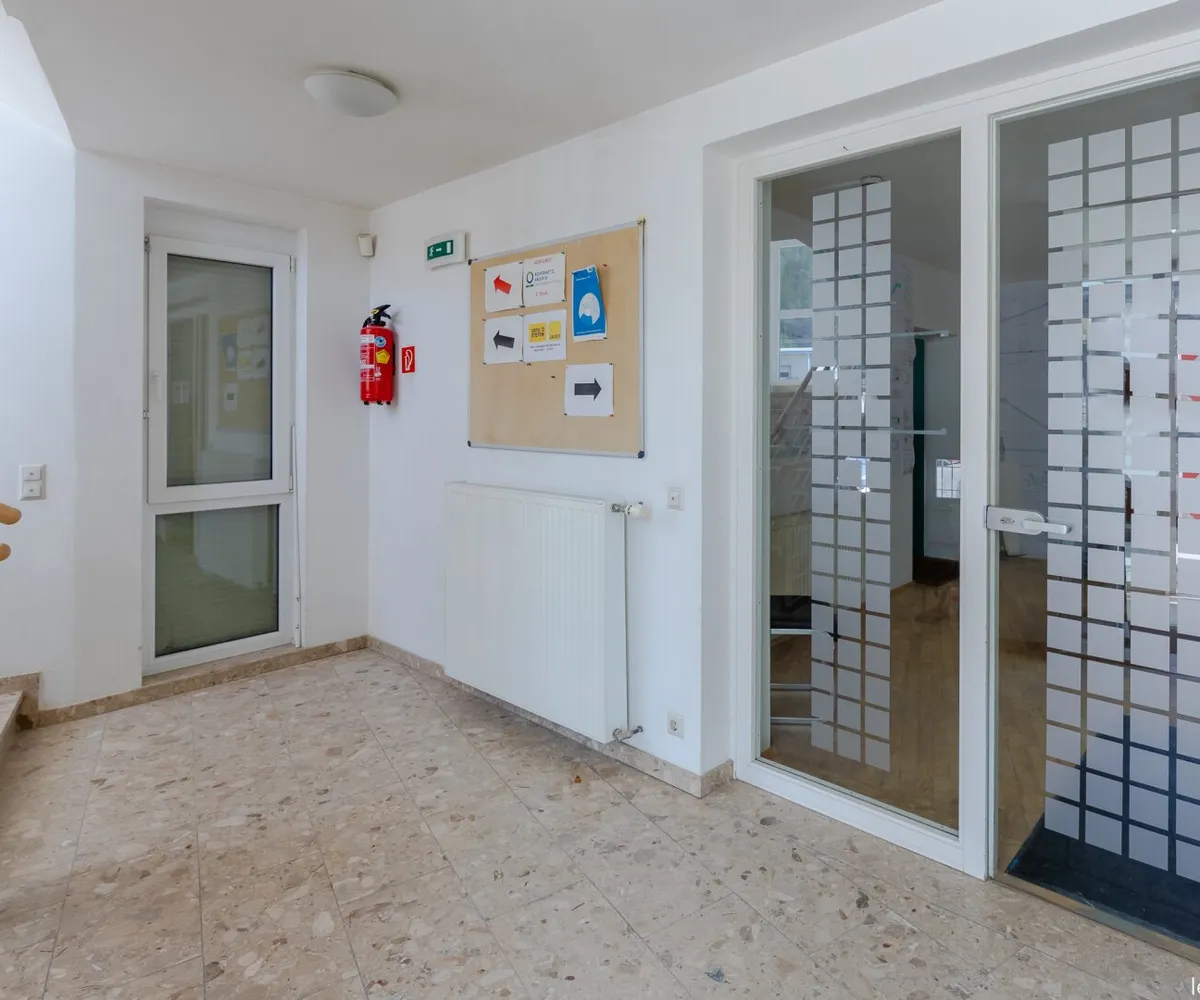 Die vermietbaren Büroflächen gehören zum EG und 1. Stock . Im Eingangsbereich des Erdgeschosses befindet sich ein zentraler Empfang. Jede Etage wird durch eine separate Teeküche und WC ergänzt.