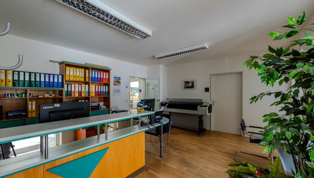 Großer Vorteil : Beide betrieblichen Geschosse sind auch separat anzumieten; also auch für zwei verschiedene Firmen.