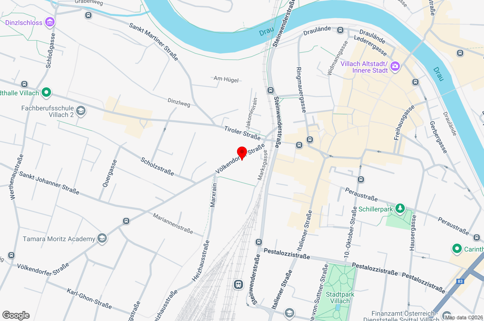 Das Büroobjekt befindet sich in attraktiver und gut erreichbarer Lage in Villach, in der Völkendorferstraße. Diese Adresse liegt in einem etablierten Stadtgebiet mit gemischter Nutzung aus Büro-, Dienstleistungs- und Handelsbetrieben und bietet damit ein repräsentatives sowie wirtschaftlich interessantes Umfeld.
