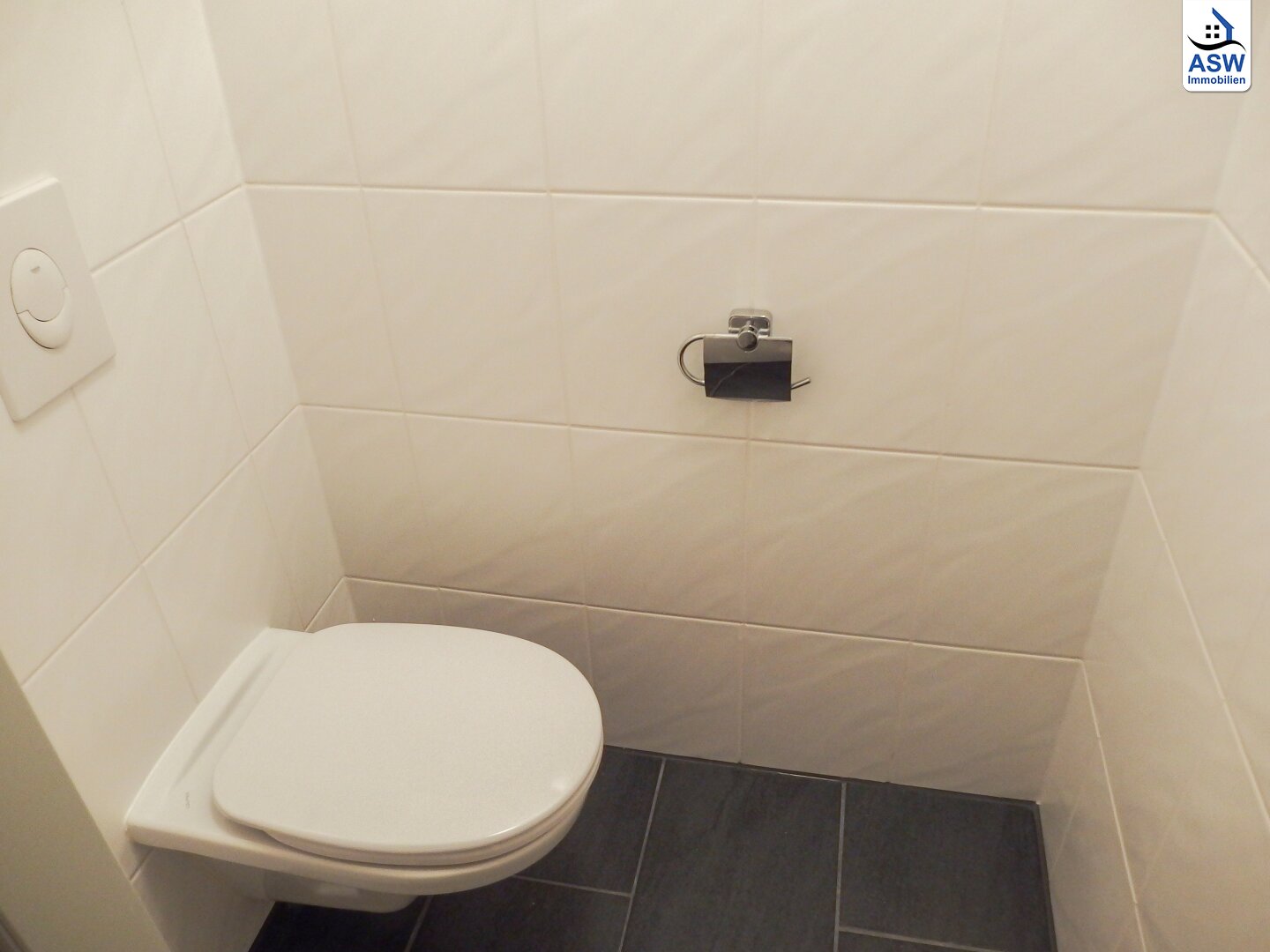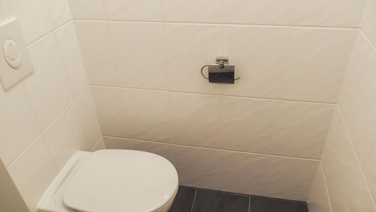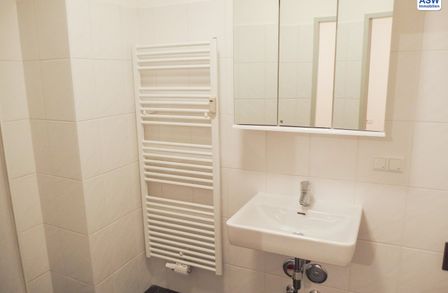 - Badezimmer mit Dusche und Waschmaschinenanschluss, WC separat