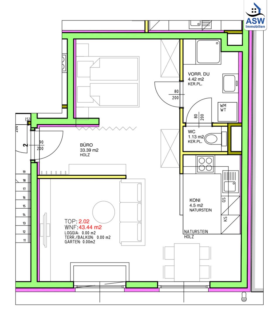- ein weiterer Büroraum (nicht abgetrennt)