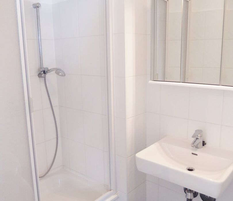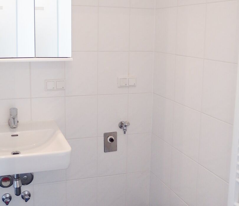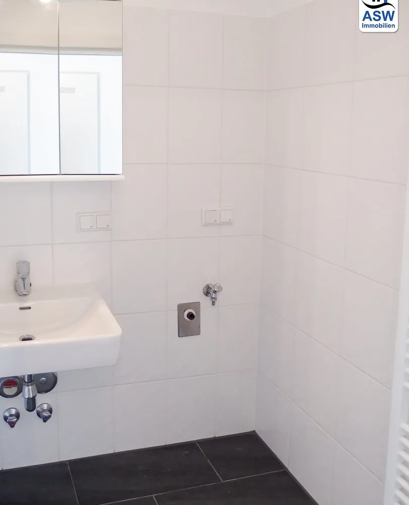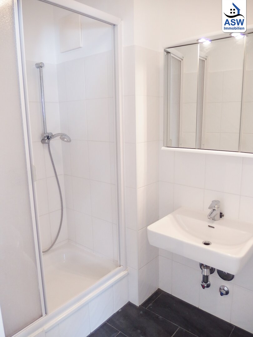 - Badezimmer mit Dusche und Waschmaschinenanschluss