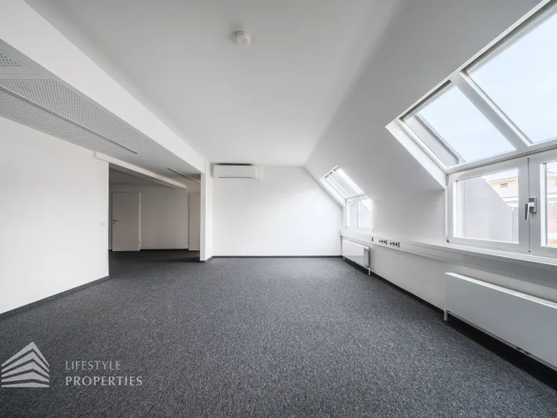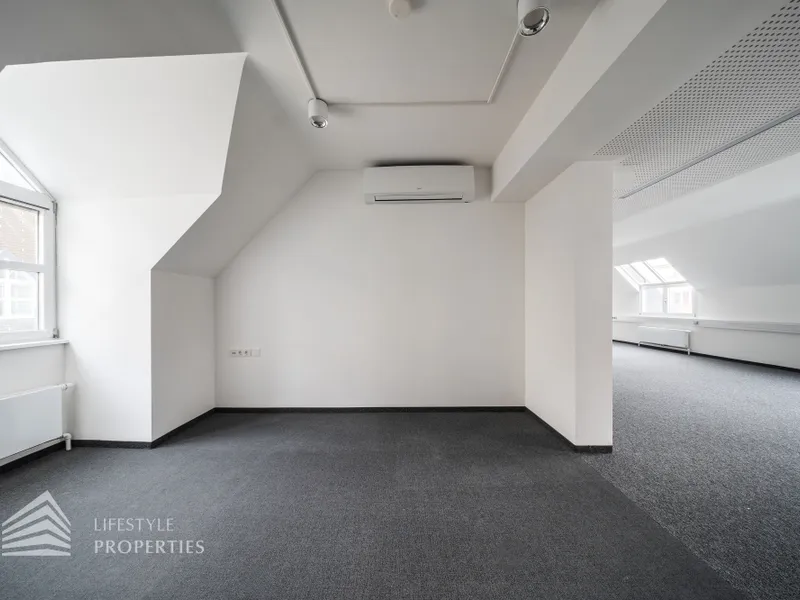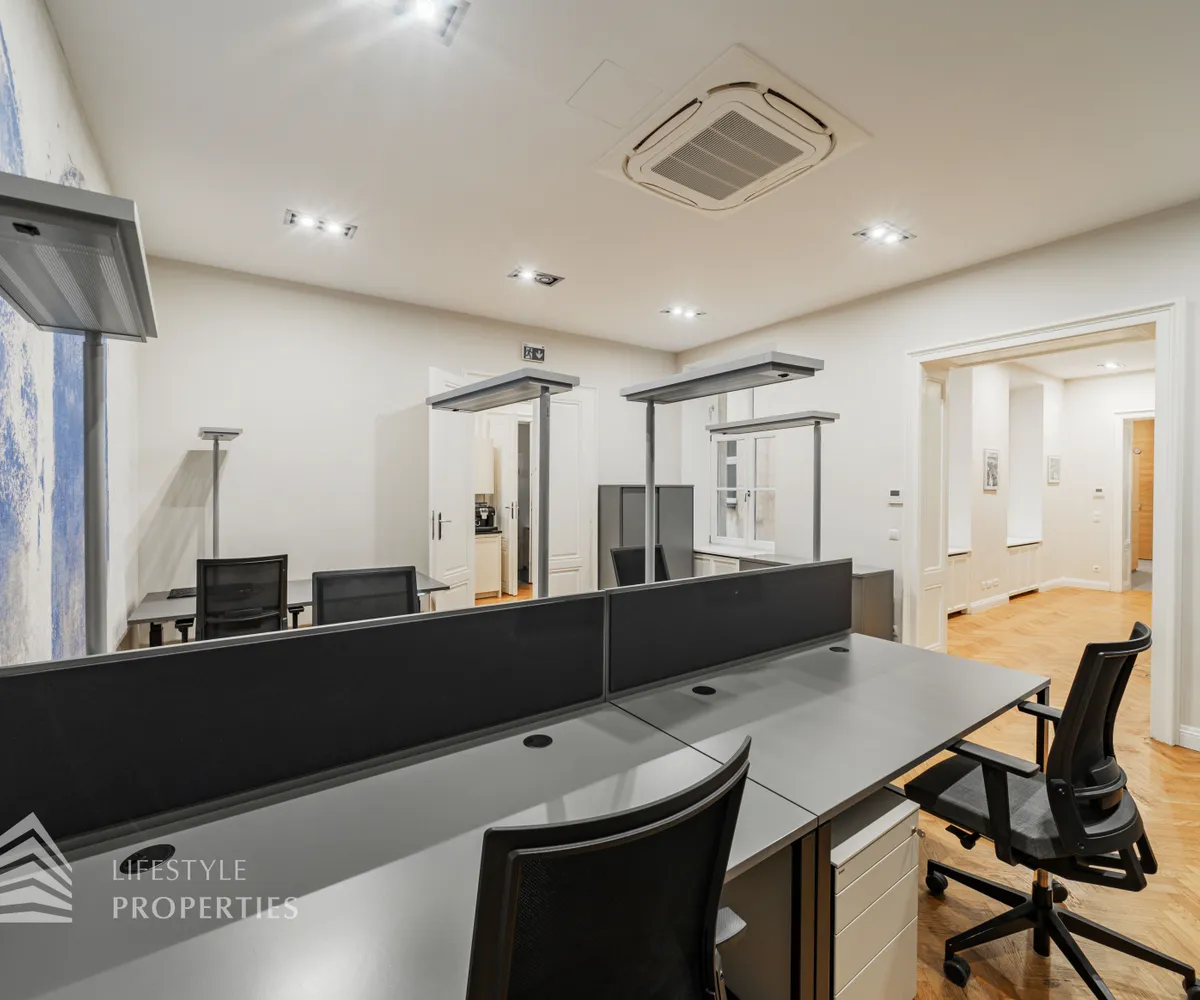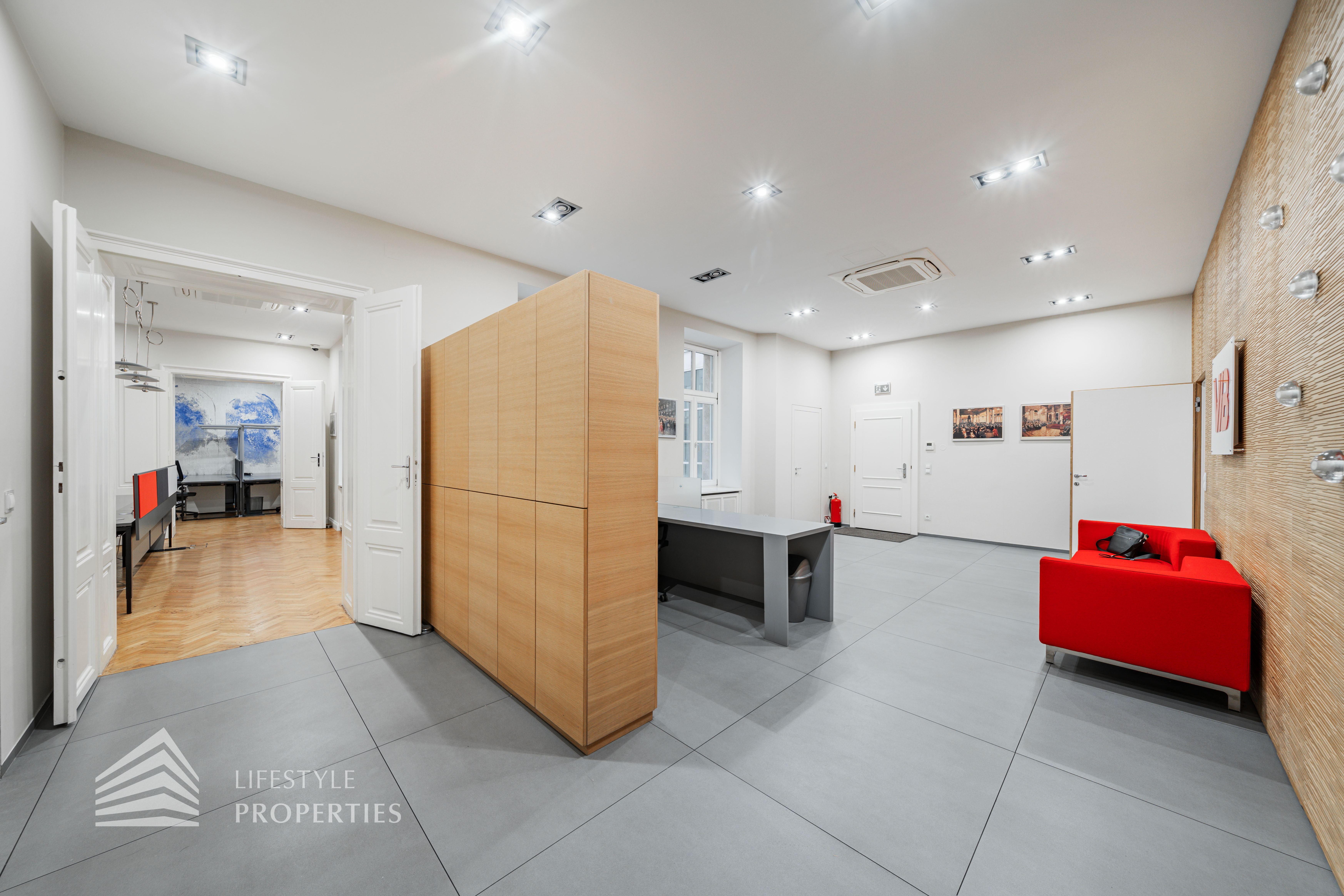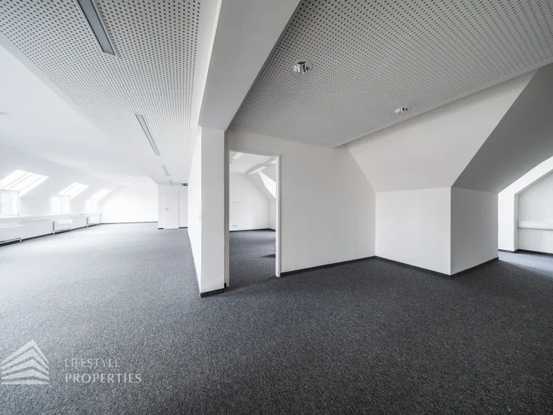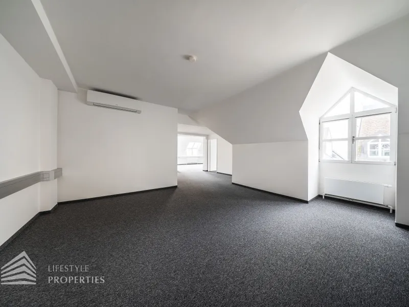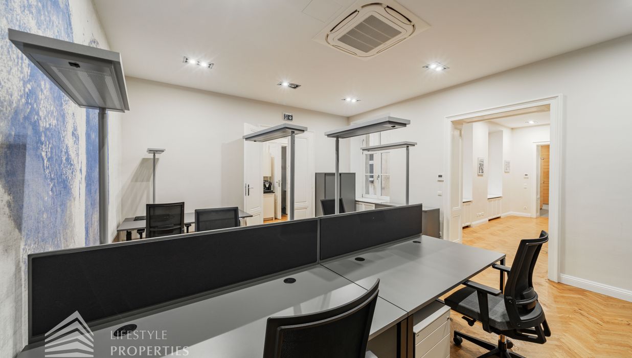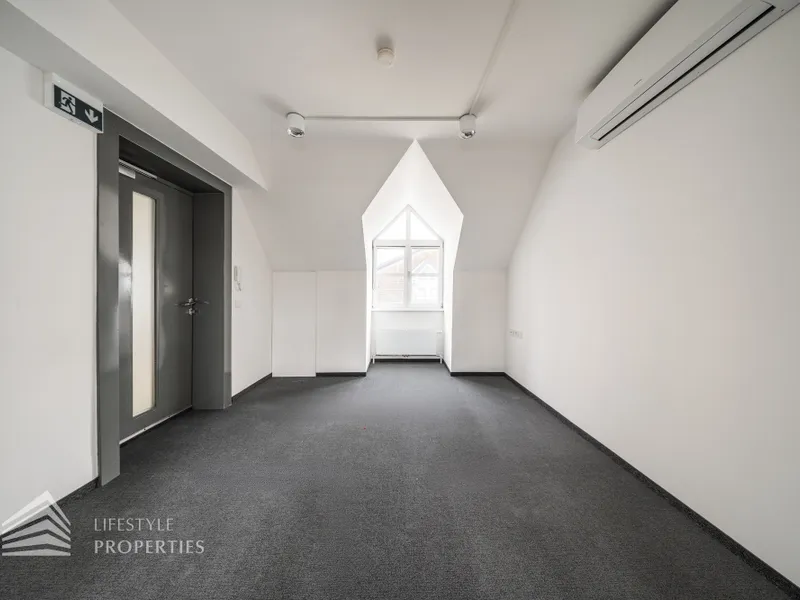 Das Büro befindet sich im zweiten Obergeschoss eines im Jahre 1850 erbauten, charmanten Altbaus. Die ca. 174 m² Fläche teilen sich auf in vier Büroräume, einen Empfangsraum und einer Küche. Das Büro ist durchwegs mit hochwertigem Parkett und exklusiven Fliesen ausgekleidet. Alle Räume sind klimatisiert und mit Kameras ausgestattet.