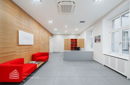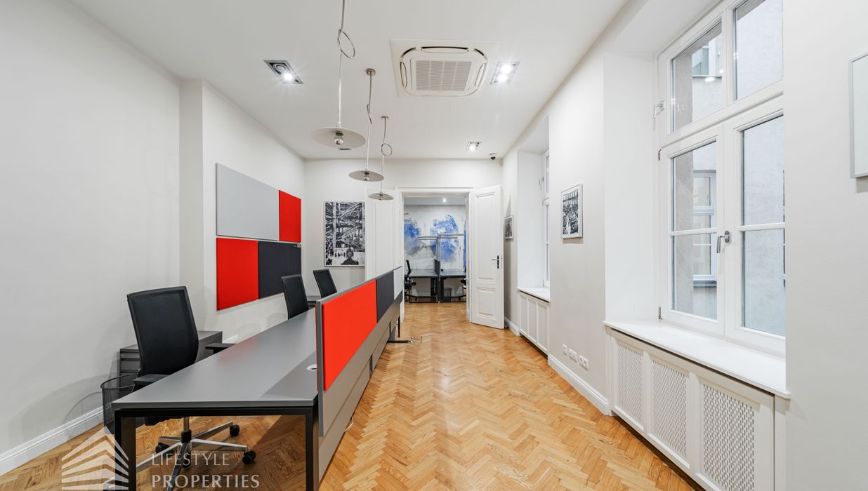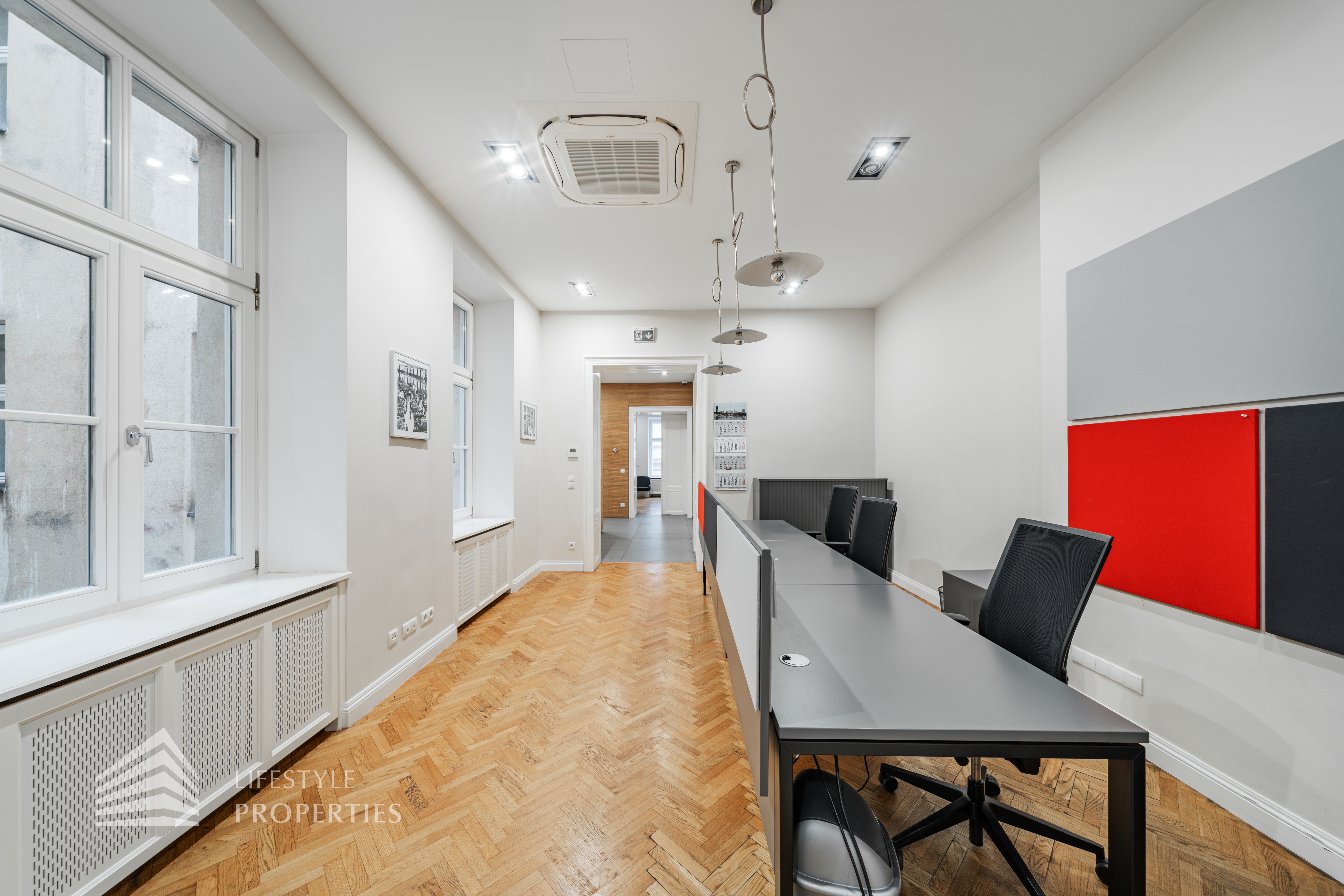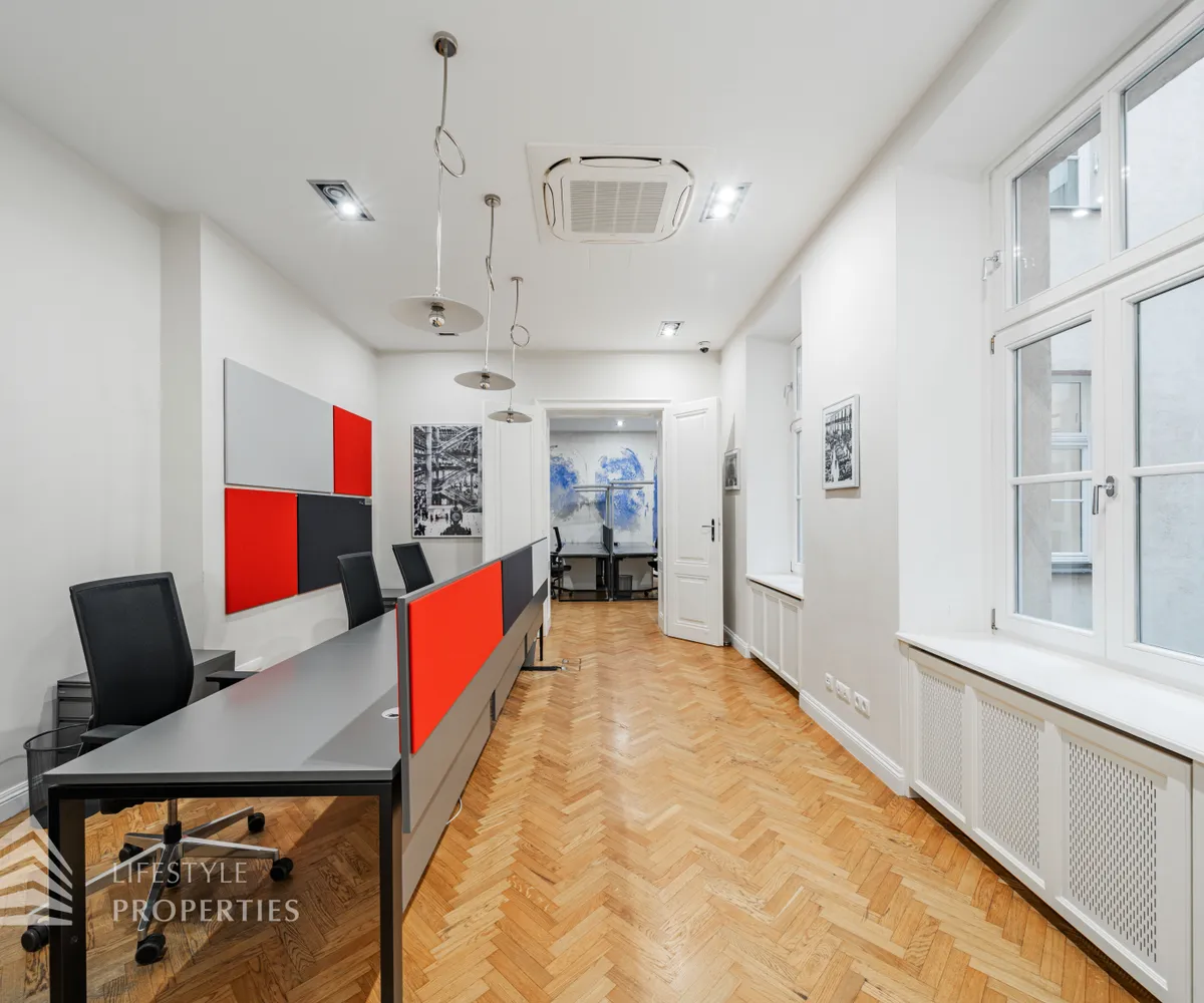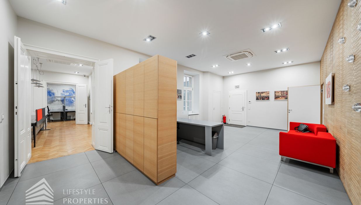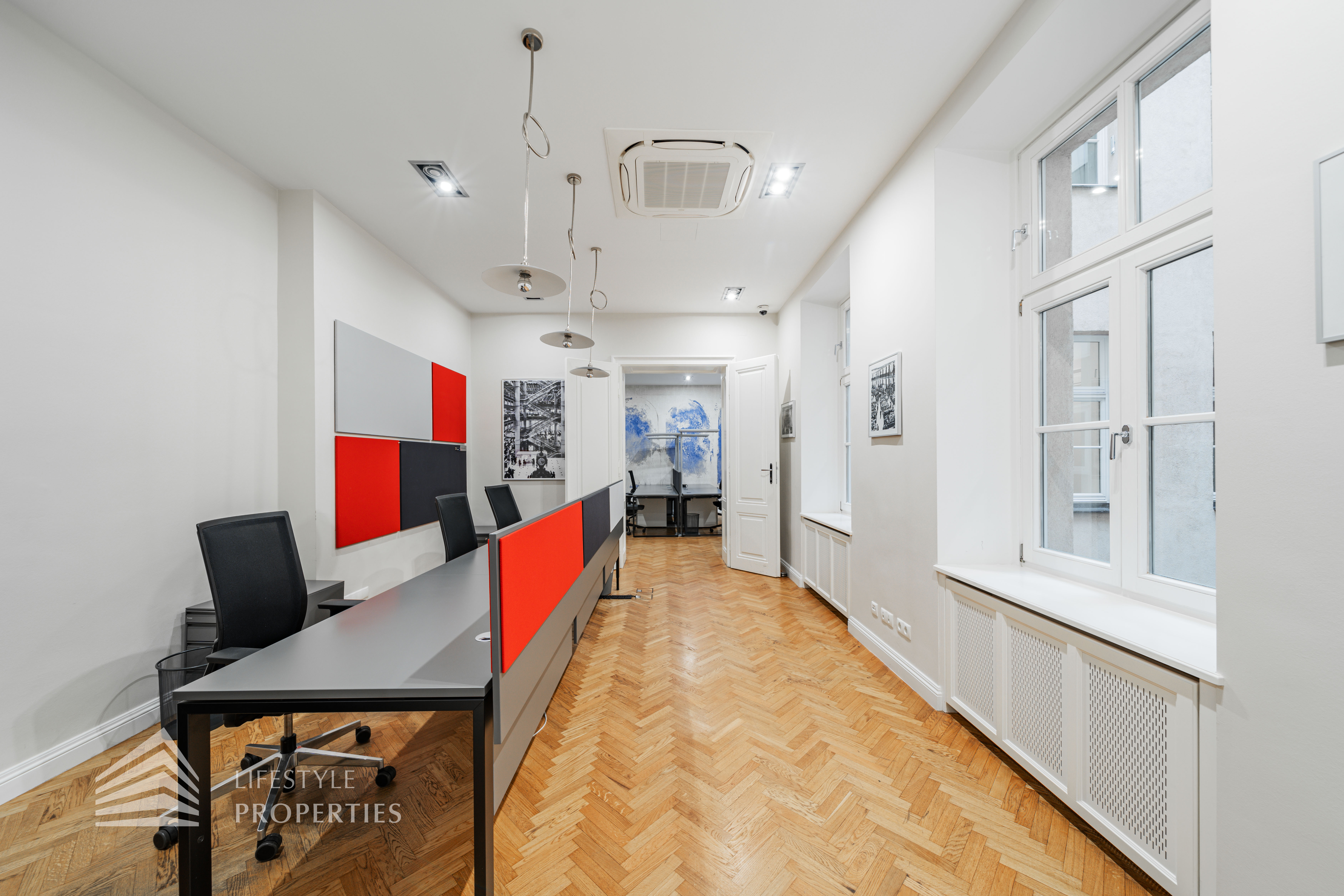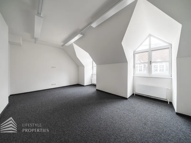 Das Büro befindet sich im zweiten Obergeschoss eines im Jahre 1850 erbauten, charmanten Altbaus. Die ca. 174 m² Fläche teilen sich auf in vier Büroräume, einen Empfangsraum und einer Küche. Das Büro ist durchwegs mit hochwertigem Parkett und exklusiven Fliesen ausgekleidet. Alle Räume sind klimatisiert und mit Kameras ausgestattet.