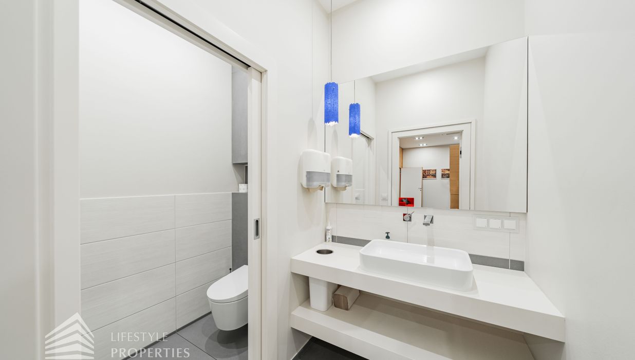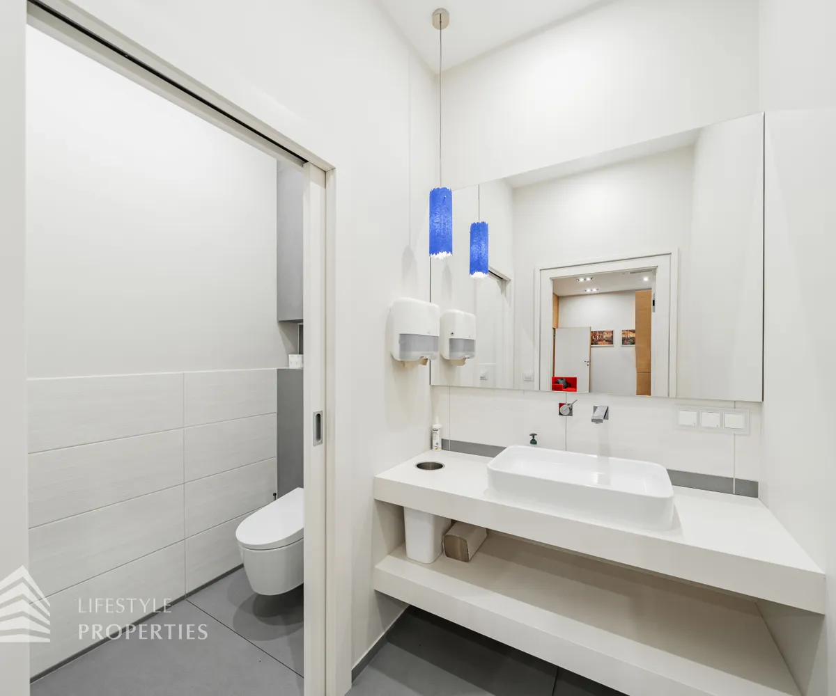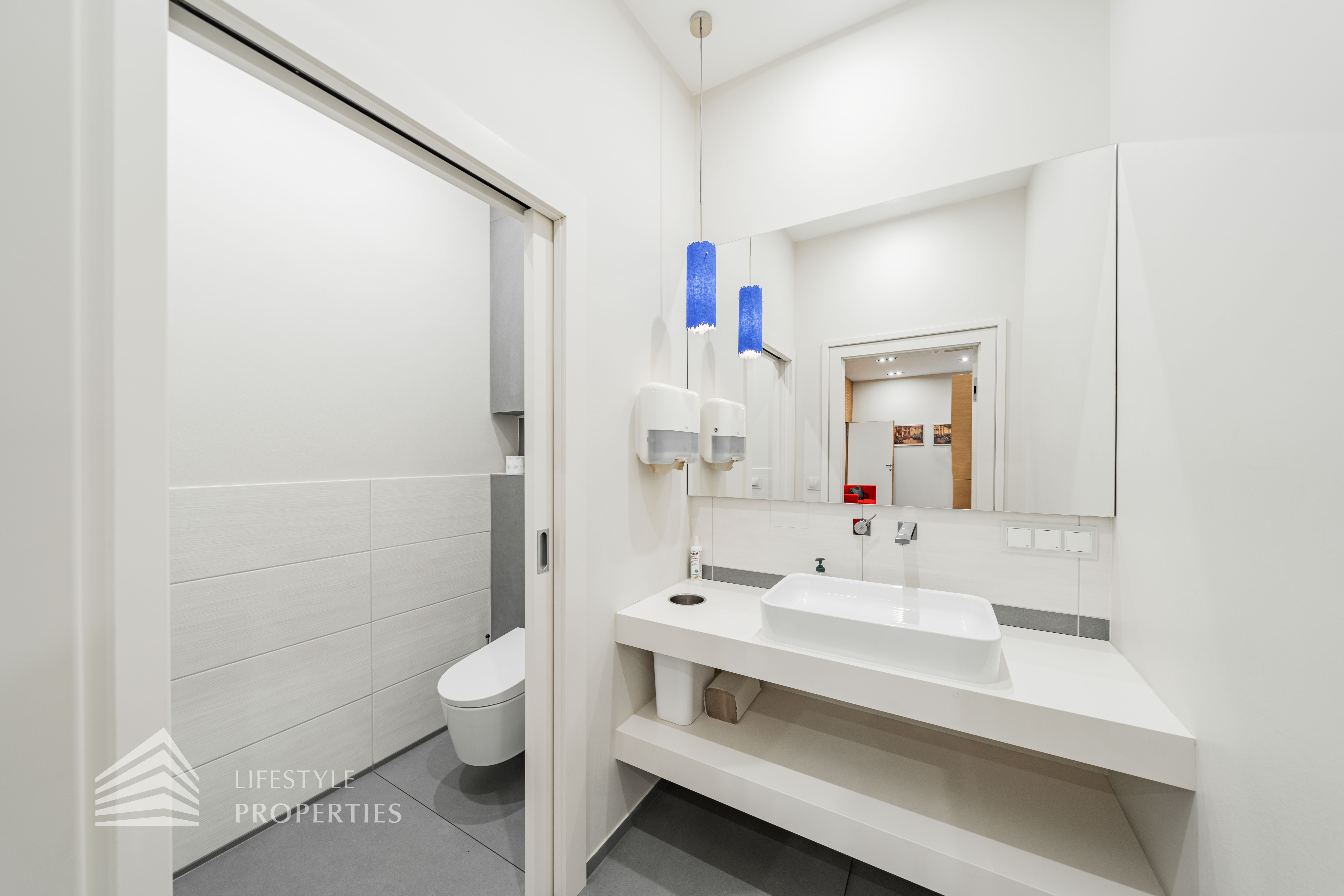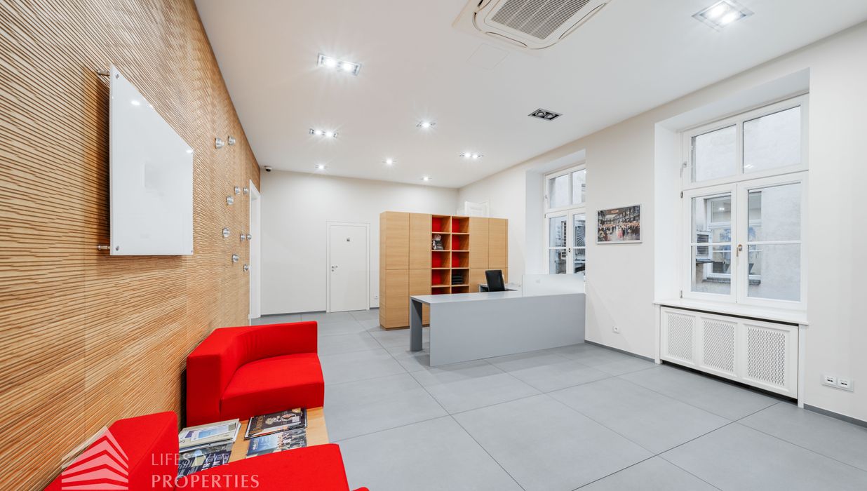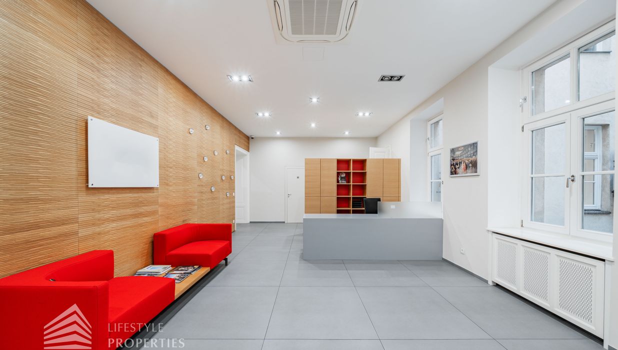 Sie betreten die Immobilie und gelangen direkt in den großen Empfangsraum mit einer Fläche von ca. 39,84 m², dieser mit exklusiven Fliesen ausgelegt ist. Auf der linken Seite gelangt man in den beeindruckenden Besprechungsraum mit einer Größe von ca. 31,35 m², von diesen man durch eine große Flügeltüre das ca. 27,65 m² große Chefbüro erreicht. Rückwerts beim Empfang befindet sich die Gästetoilette und der Serverraum. Des Weiteren erreichen Sie am Ende des Empfangs das Arbeitszimmer mit ca. 21,10 m², als auch den mit ca. 30,26 m² großen Büroraum. Anschließend befindet sich die Teeküche, ausgestattet mit allen Geräten sowie nebenan die Toilette für die Angestellten. Von dieser Seite erreicht man den Fluchtweg zum Stiegenhaus. Beheizt wird das Büro mittels Zentralheizung.