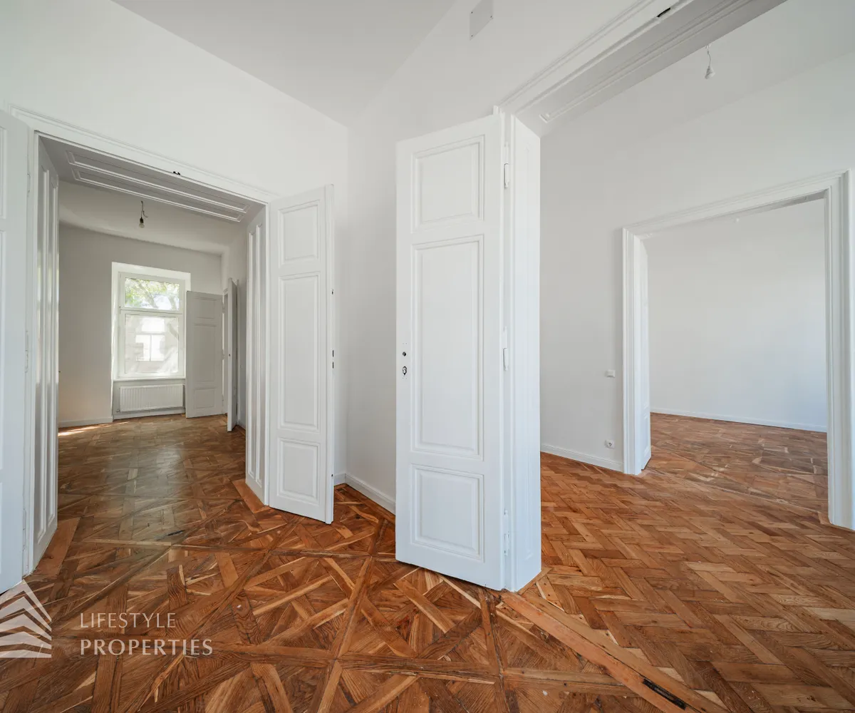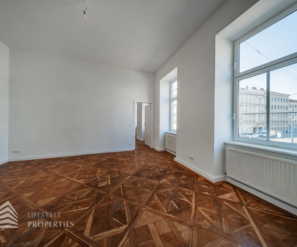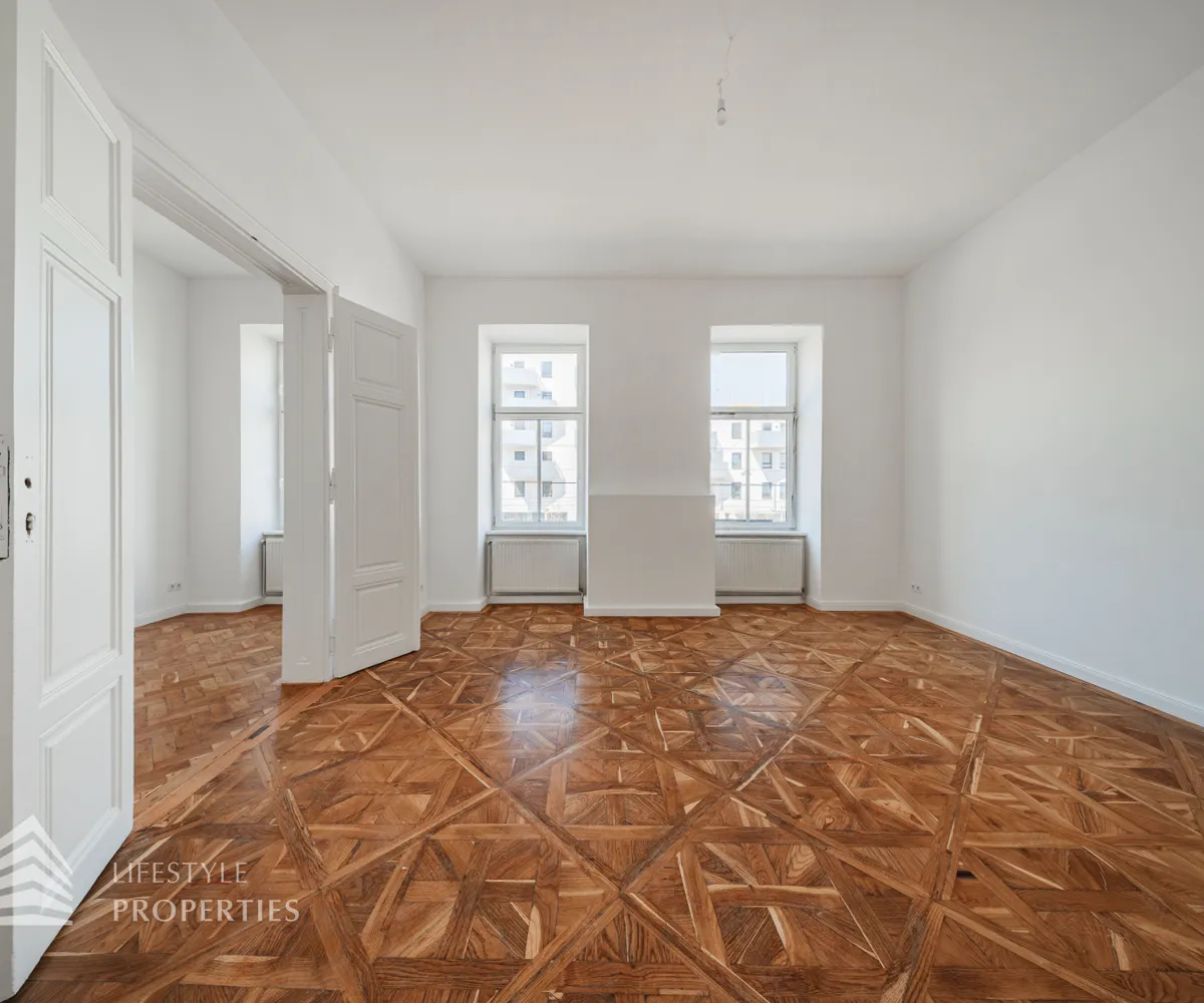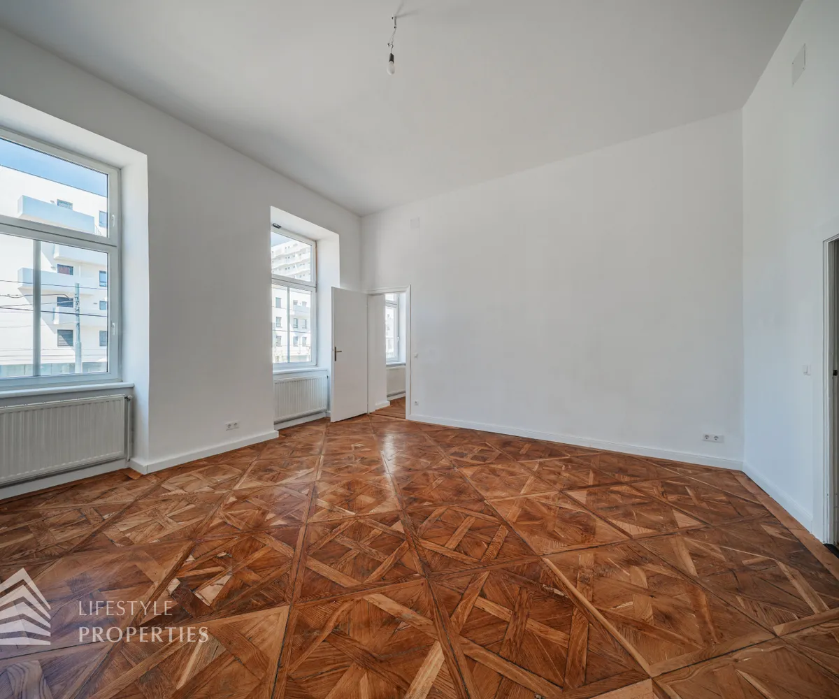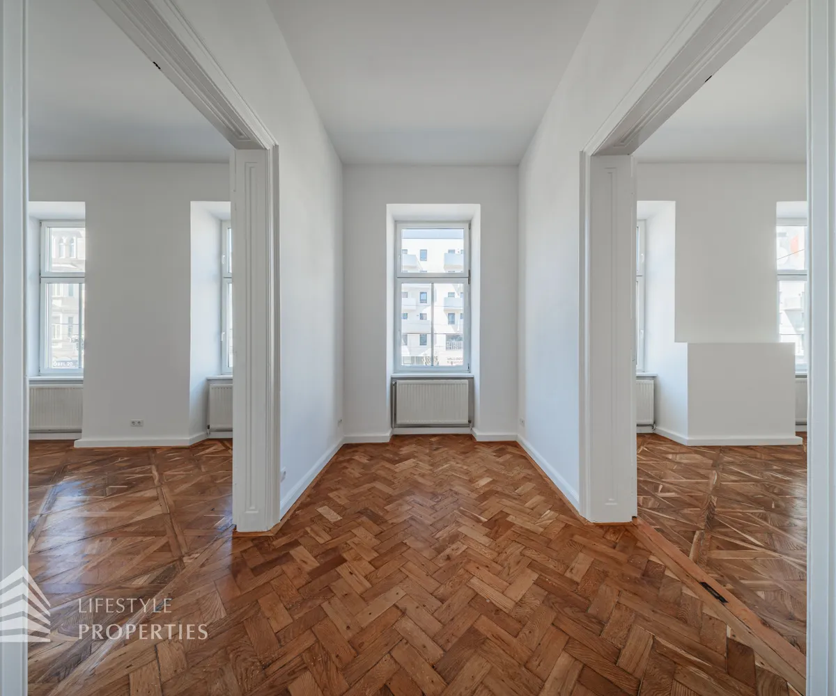 Das Objekt befindet sich im ersten Stock eines gepflegten Altbaugebäudes und weist eine Gesamtfläche von ca. 133 m² auf.