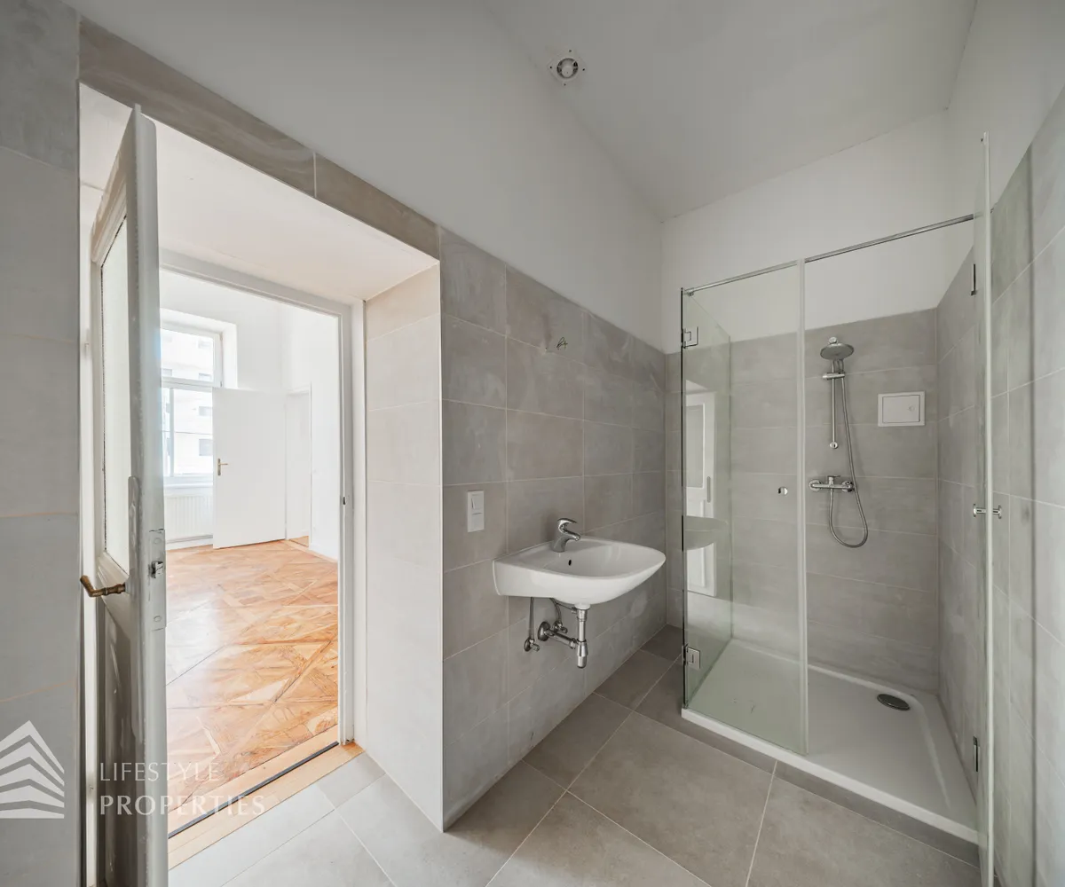 Das geräumige Büro wurde frisch renoviert und teilt sich in 5 Zimmer, einen Vorraum, ein Bad mit Dusche, ein Zimmer mit Küchenanschluss und ein WC. Die Räumlichkeiten sind mit einem wunderschönen Parkettboden ausgestattet, das Bad, der Vorraum und das WC sind verfliest.