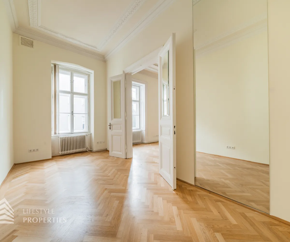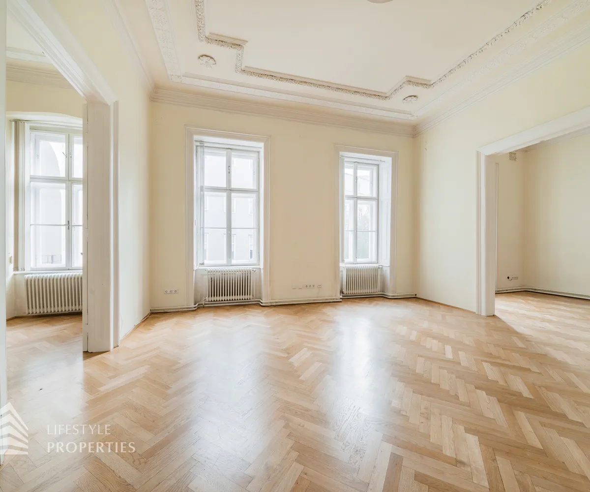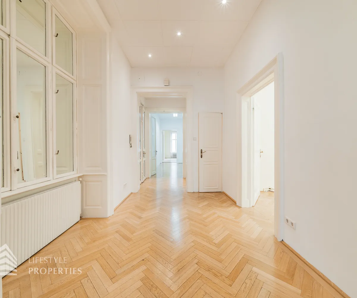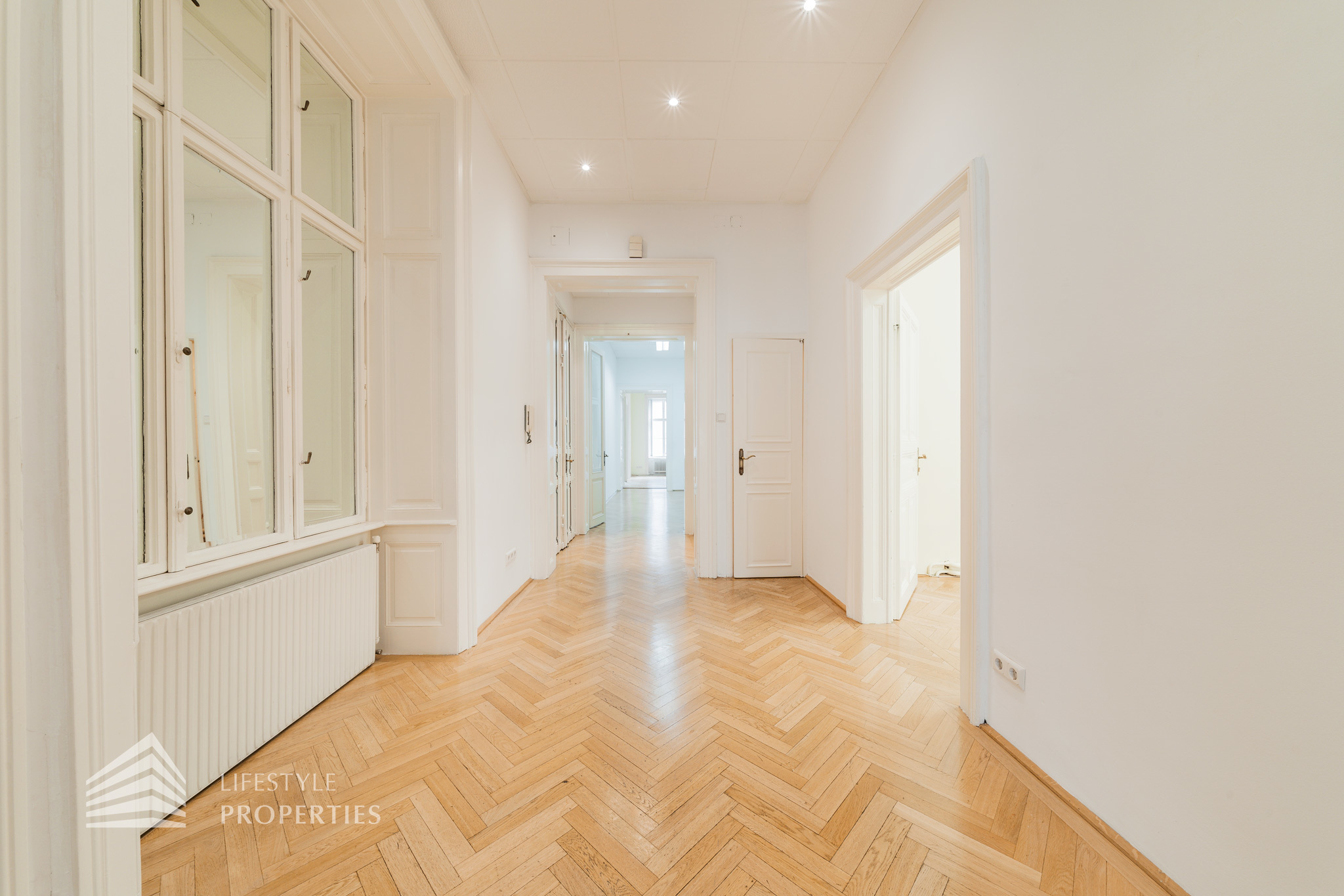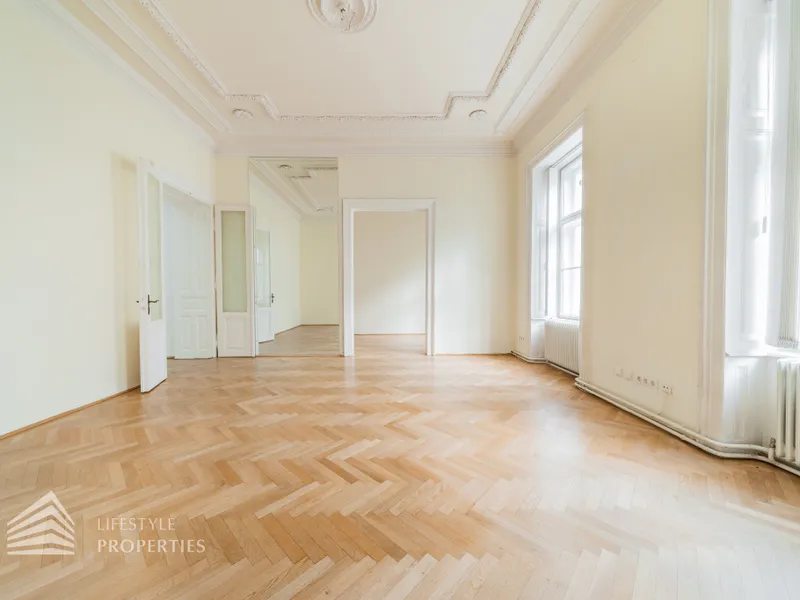 Dieses Objekt befindet sich im 2. Obergeschoß eines eleganten Gründerzeithauses, nur wenige Minuten von der Votivkirche entfernt. Das zweite Obergeschoß kann sowohl mit Lift, als auch durch ein stilvolles Treppenhaus erreicht werden. Die Immobilie umfasst insgesamt eine Fläche von ca. 201 m², welche sich auf sieben Zimmer, zwei Toiletten, ein Bad und eine Küche aufteilen. Alle Zimmer sind mit hochwertigem Parkettboden verlegt.
