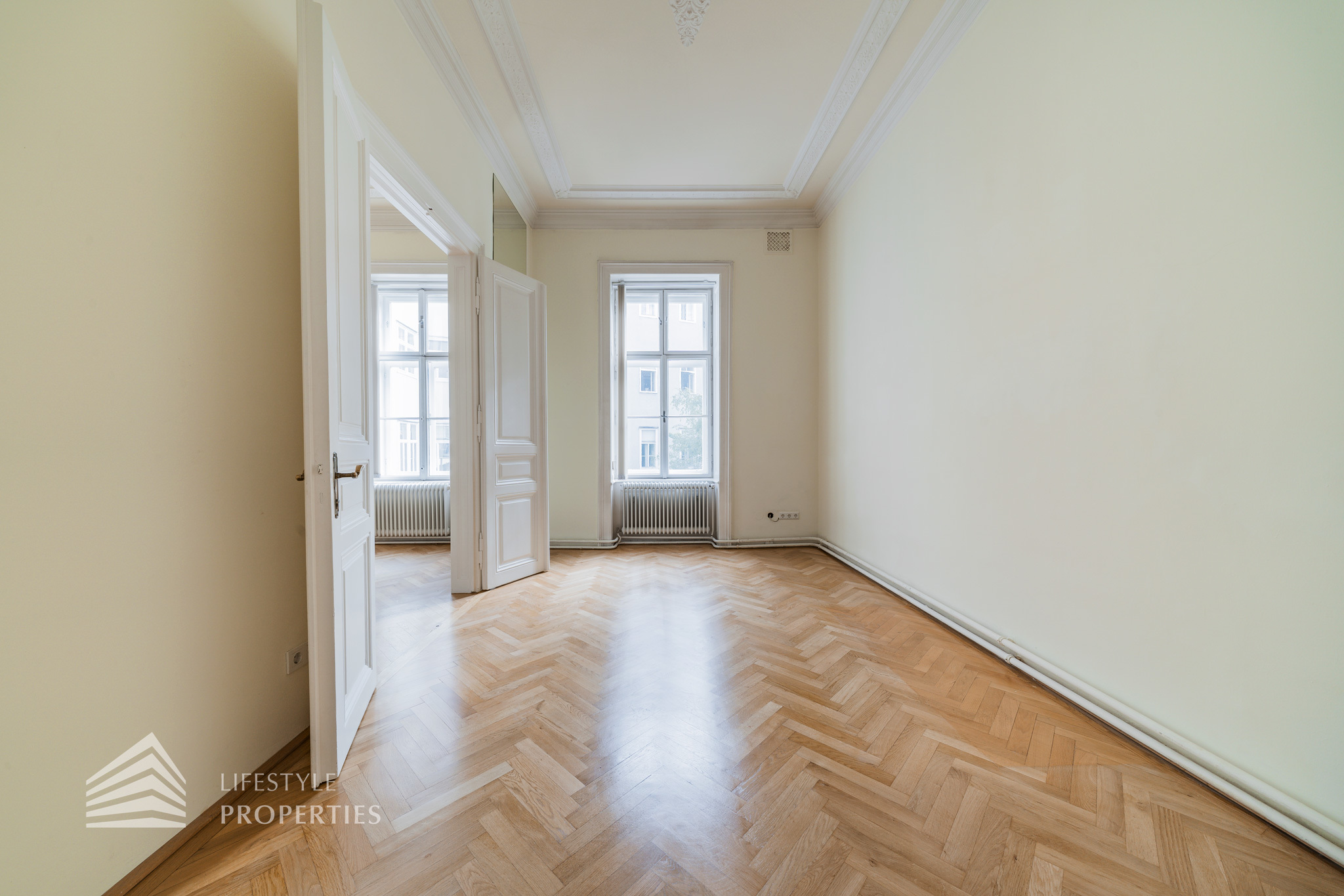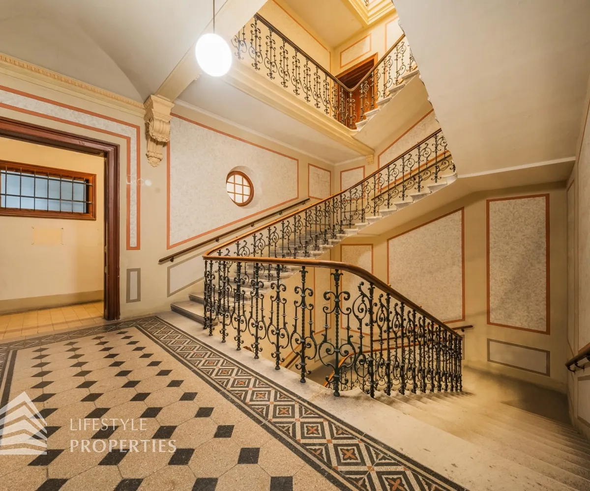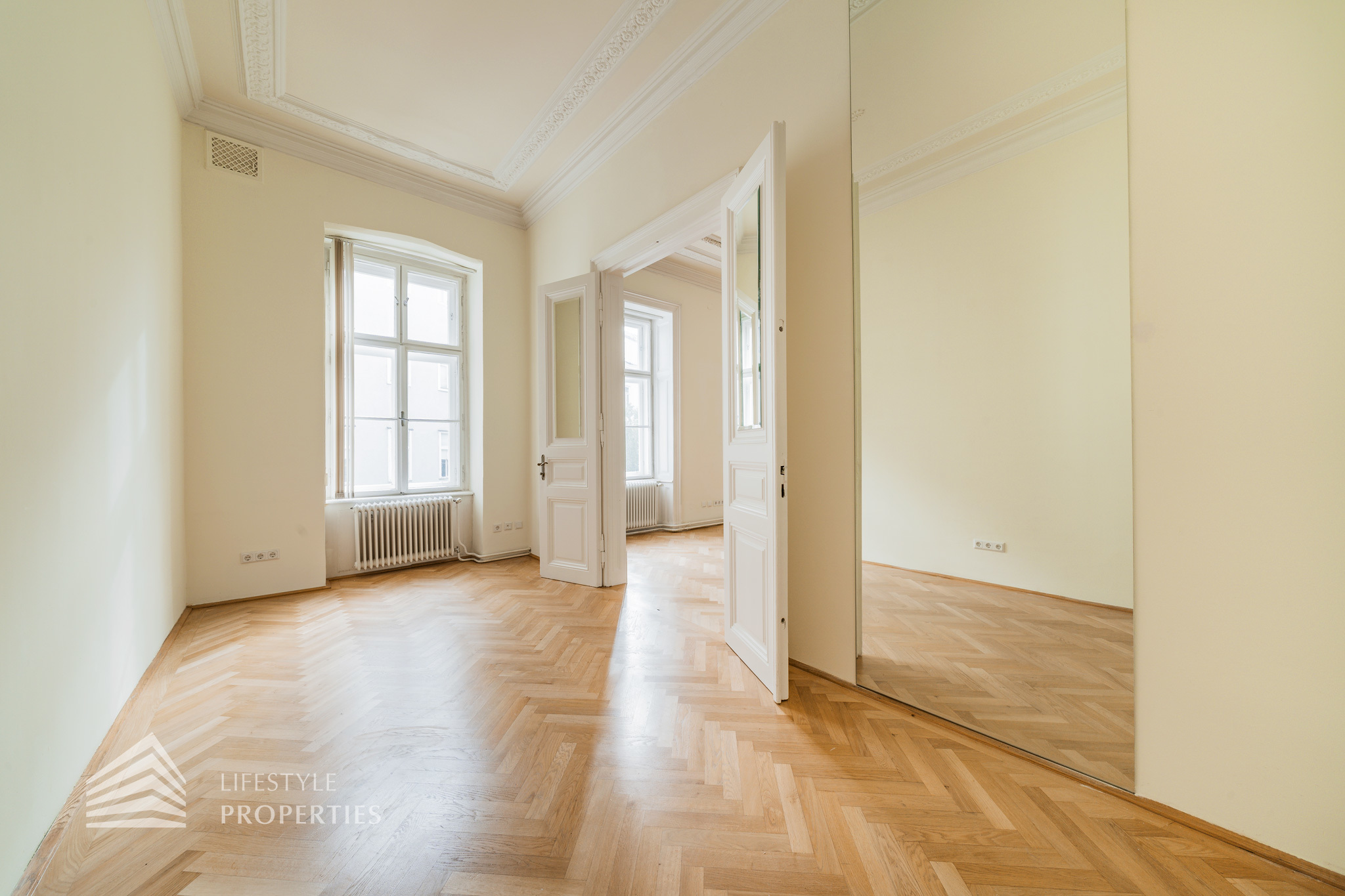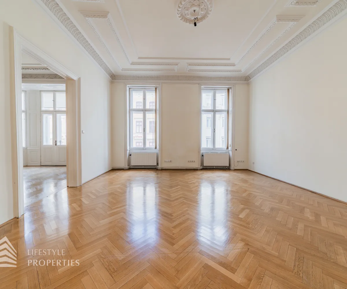 Dieses Objekt befindet sich im 2. Obergeschoß eines eleganten Gründerzeithauses, nur wenige Minuten von der Votivkirche entfernt. Das zweite Obergeschoß kann sowohl mit Lift, als auch durch ein stilvolles Treppenhaus erreicht werden. Die Immobilie umfasst insgesamt eine Fläche von ca. 201 m², welche sich auf sieben Zimmer, zwei Toiletten, ein Bad und eine Küche aufteilen. Alle Zimmer sind mit hochwertigem Parkettboden verlegt.