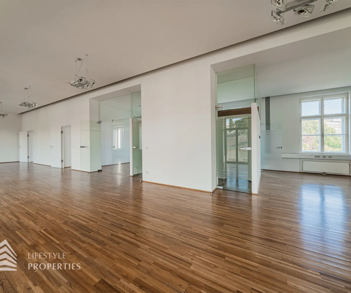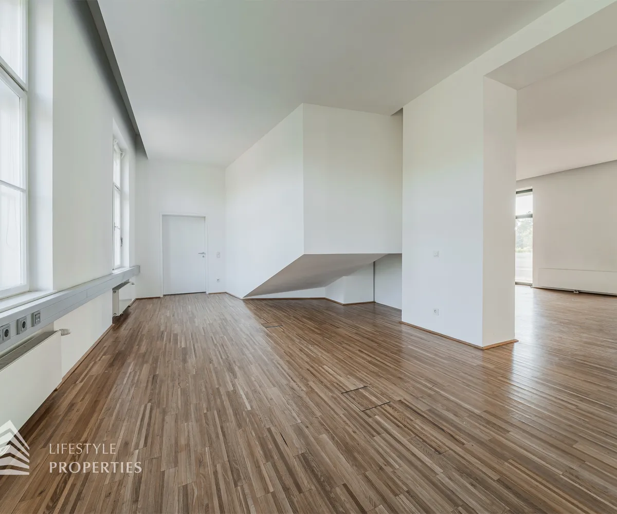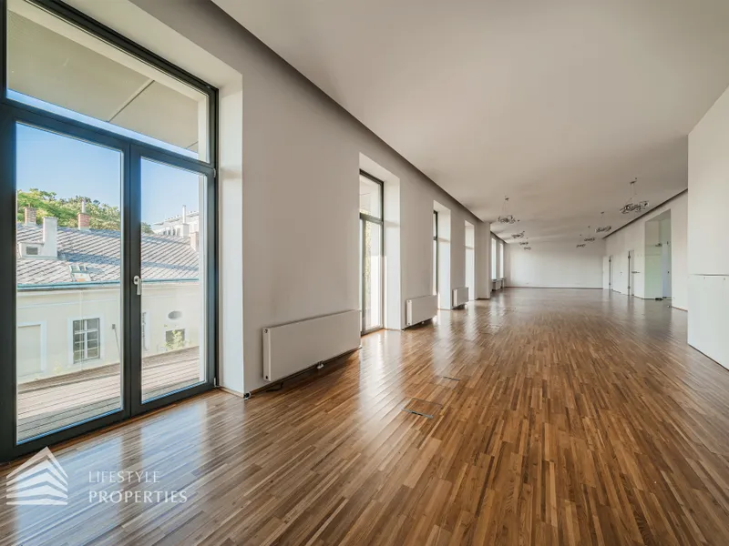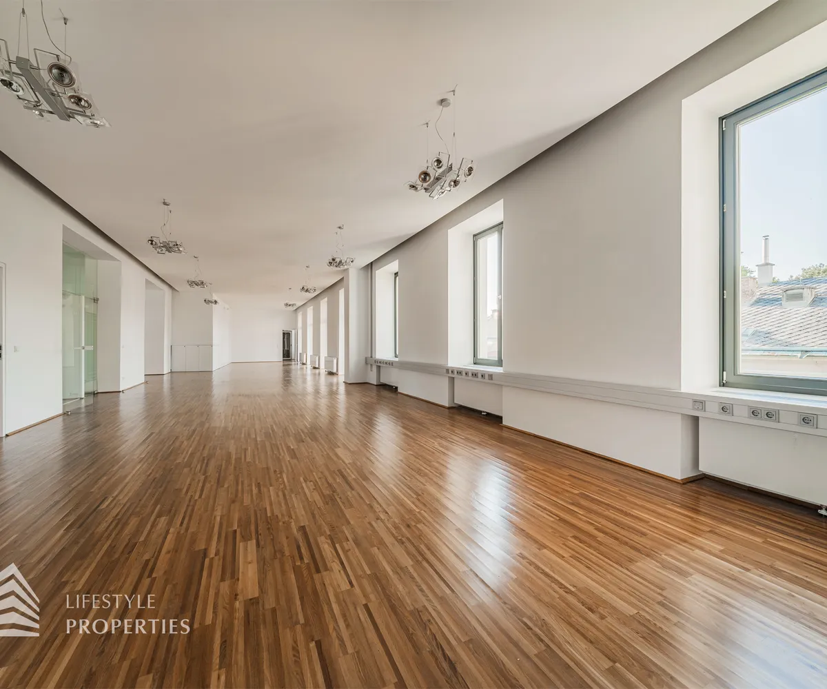 Das Objekt besteht aus 3 Zimmern, einer Teeküche, zwei Toiletten und einem Balkon. Die Räume sind großzügig angelegt mit modernen Glas-Trennelementen und einem wunderschönen dunklen Parkettboden ausgestattet. Durch die offene Raumgestaltung und die weitläufige Größe lässt sich das Objekt individuell gestalten und bietet sich ideal als Büro, Loft, Praxis oder Atelier an.