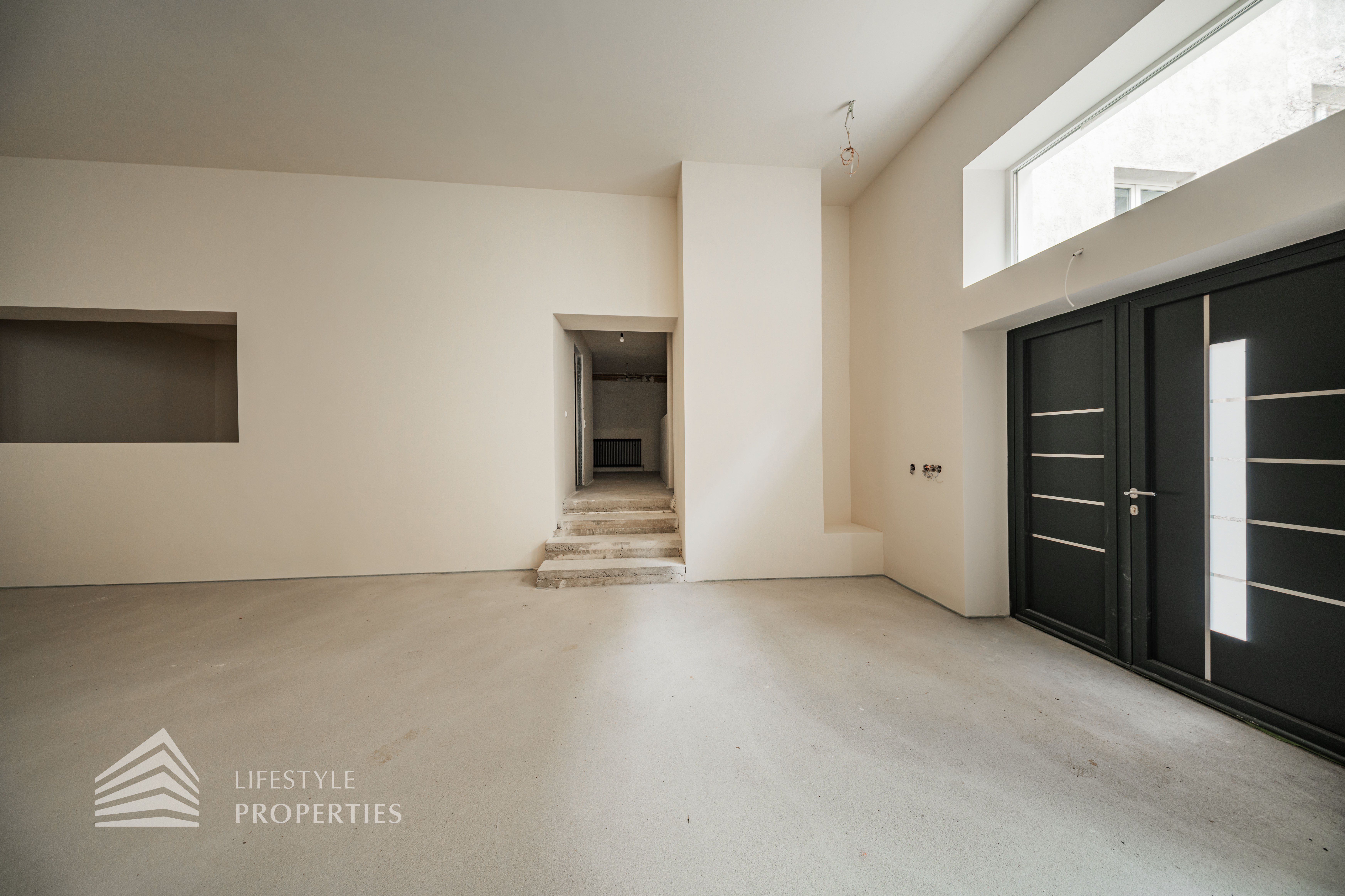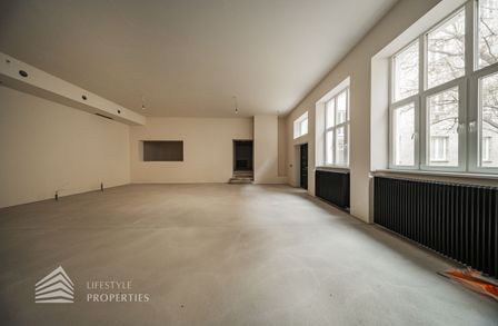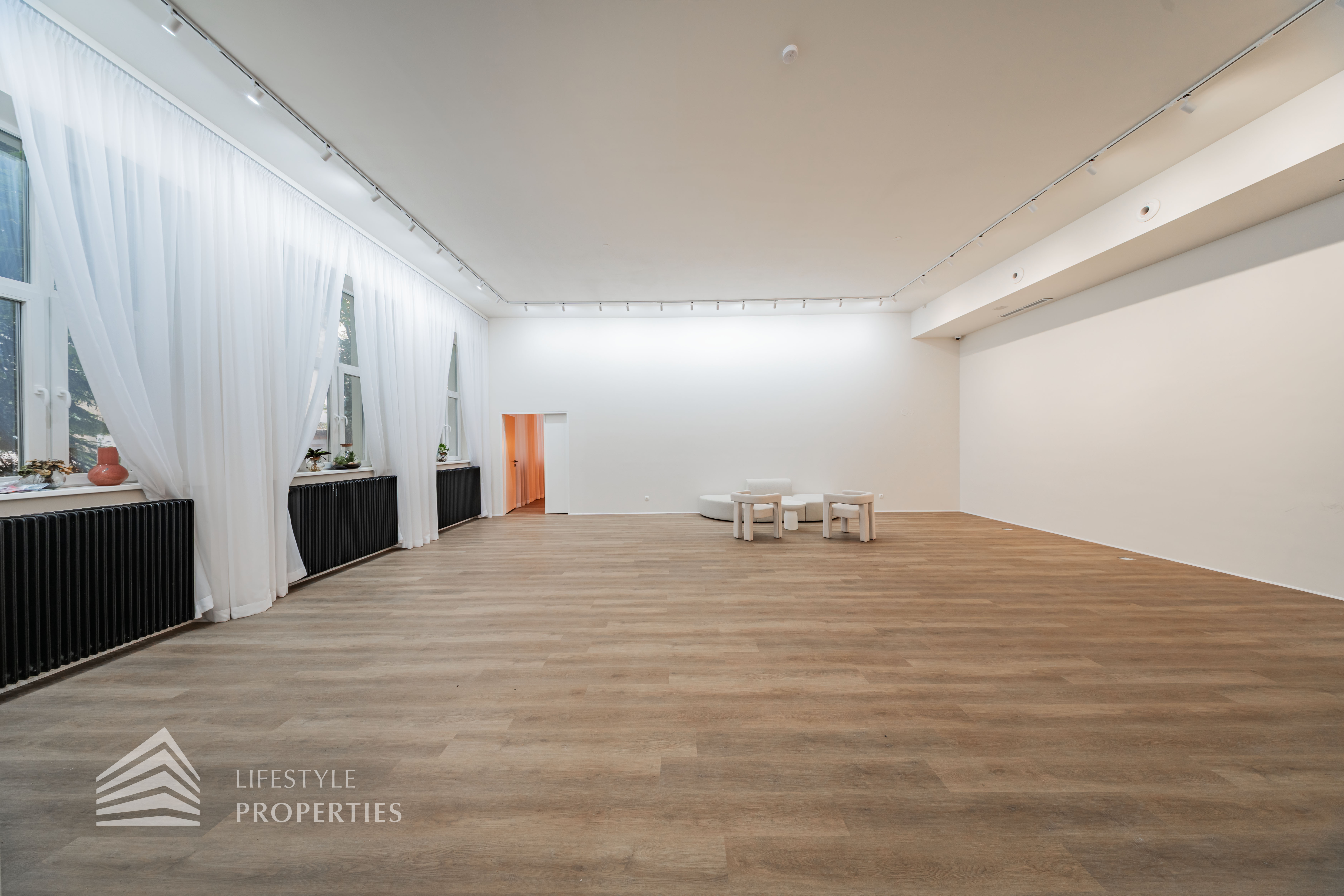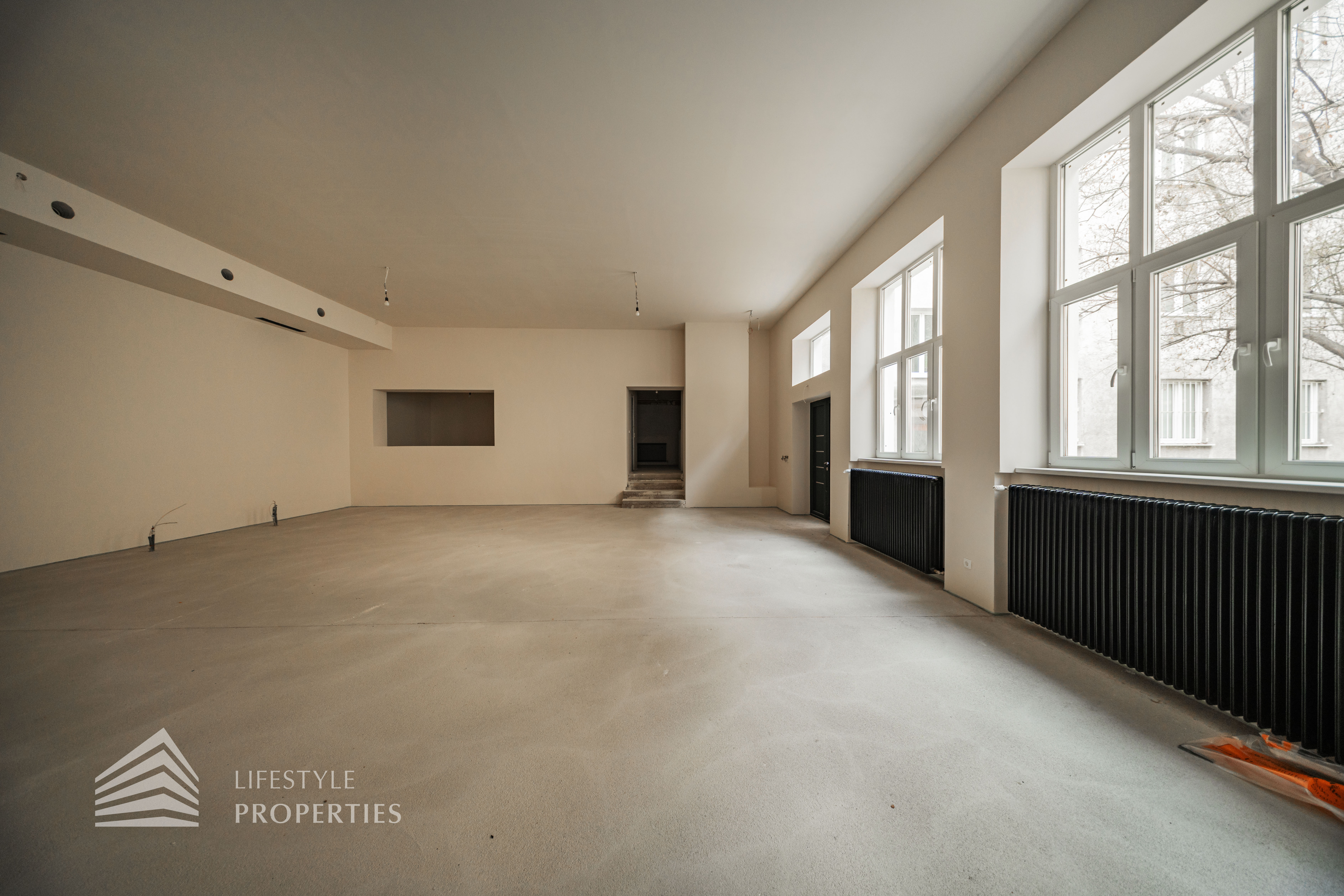 Das Loft befindet sich in einem Gebäude aus dem Jahre 1970 und ist in einem ruhigen, begrünten Hinterhof gelegen. Das Hofgebäude mit Loft-Charakter und sehr hohen Decken befindet sich aktuell in einem nicht fertiggestellten Zustand, wird jedoch umfassend saniert und modernisiert und eignet sich nach Renovierung ideal als Büro oder Atelier. Der Umbau umfasst einen großzügigen Empfangsbereich mit Garderobe sowie einen Raum, der die Möglichkeit für ein Eisbad bietet. Das Objekt ist außerdem mit zwei modernen Bädern ausgestattet, die jeweils zwei Duschen und WCs bieten. Eine angenehme Deckenkühlung sorgt für Wohlfühltemperaturen und eine hochwertige Sicherheitstür gewährleistet zusätzlichen Schutz. Es besteht die Möglichkeit, die Immobilie in unsaniertem Zustand zu erwerben. Der Kaufpreis würde dann bei € 890.000,- liegen.