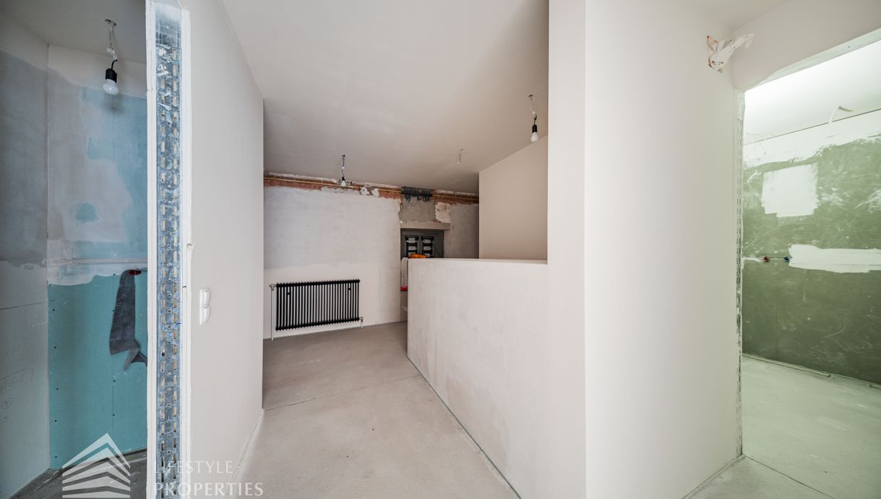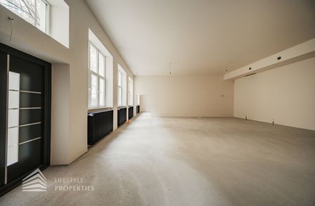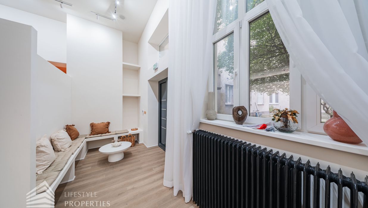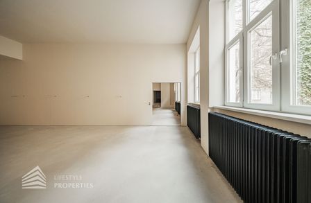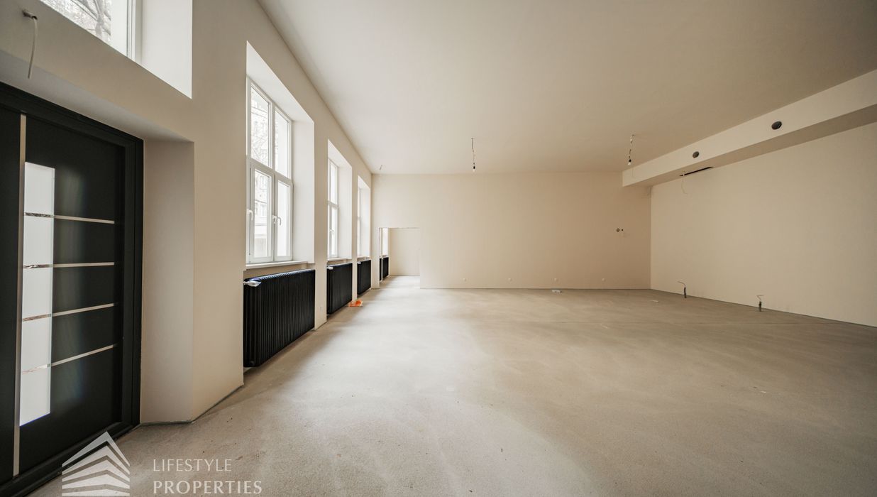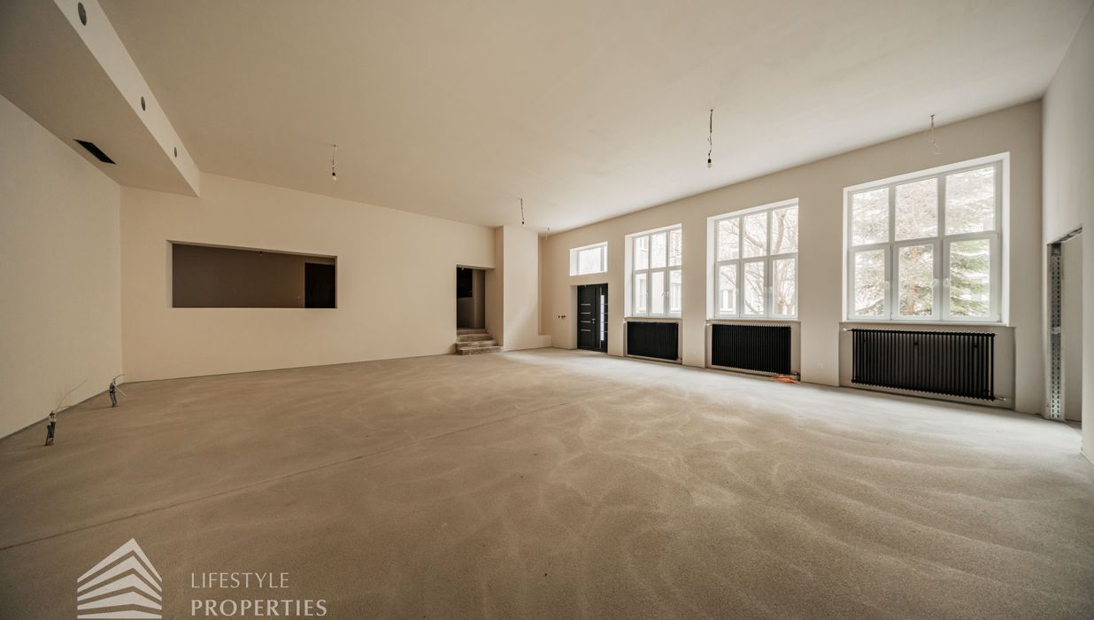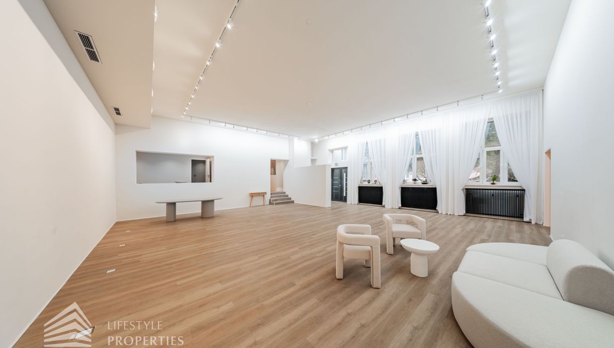 Das Loft befindet sich in einem Gebäude aus dem Jahre 1970 und ist in einem ruhigen, begrünten Hinterhof gelegen. Das Hofgebäude mit Loft-Charakter und sehr hohen Decken befindet sich aktuell in einem nicht fertiggestellten Zustand, wird jedoch umfassend saniert und modernisiert und eignet sich nach Renovierung ideal als Büro oder Atelier. Der Umbau umfasst einen großzügigen Empfangsbereich mit Garderobe sowie einen Raum, der die Möglichkeit für ein Eisbad bietet. Das Objekt ist außerdem mit zwei modernen Bädern ausgestattet, die jeweils zwei Duschen und WCs bieten. Eine angenehme Deckenkühlung sorgt für Wohlfühltemperaturen und eine hochwertige Sicherheitstür gewährleistet zusätzlichen Schutz. Es besteht die Möglichkeit, die Immobilie in unsaniertem Zustand zu erwerben. Der Kaufpreis würde dann bei € 890.000,- liegen.