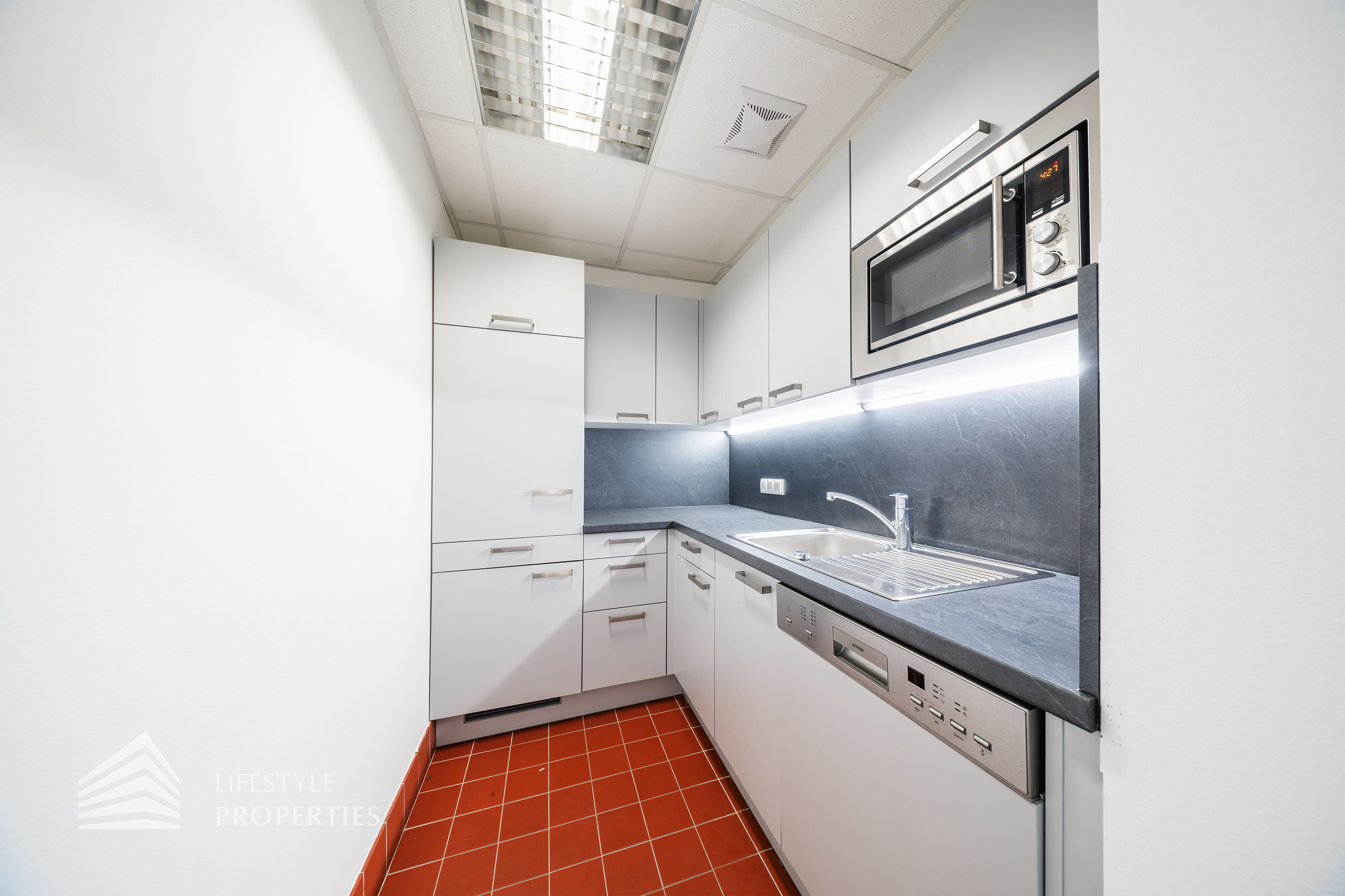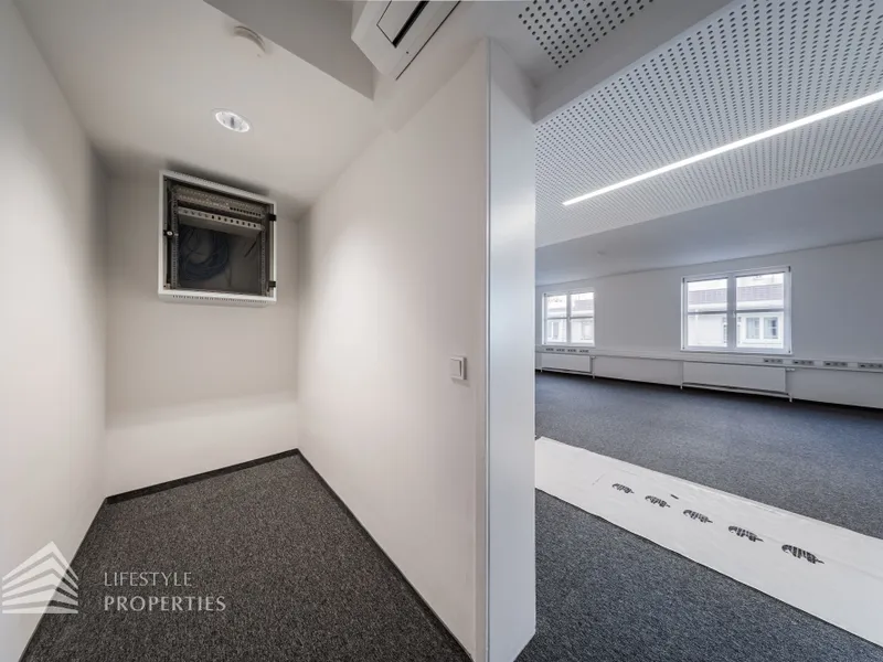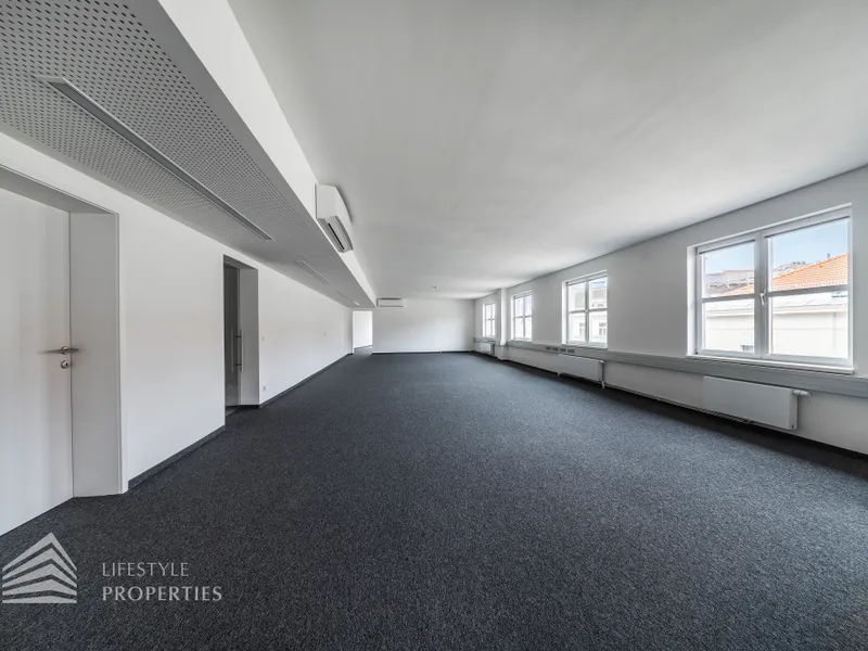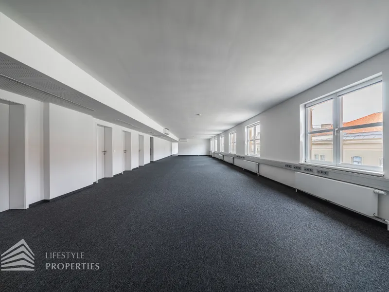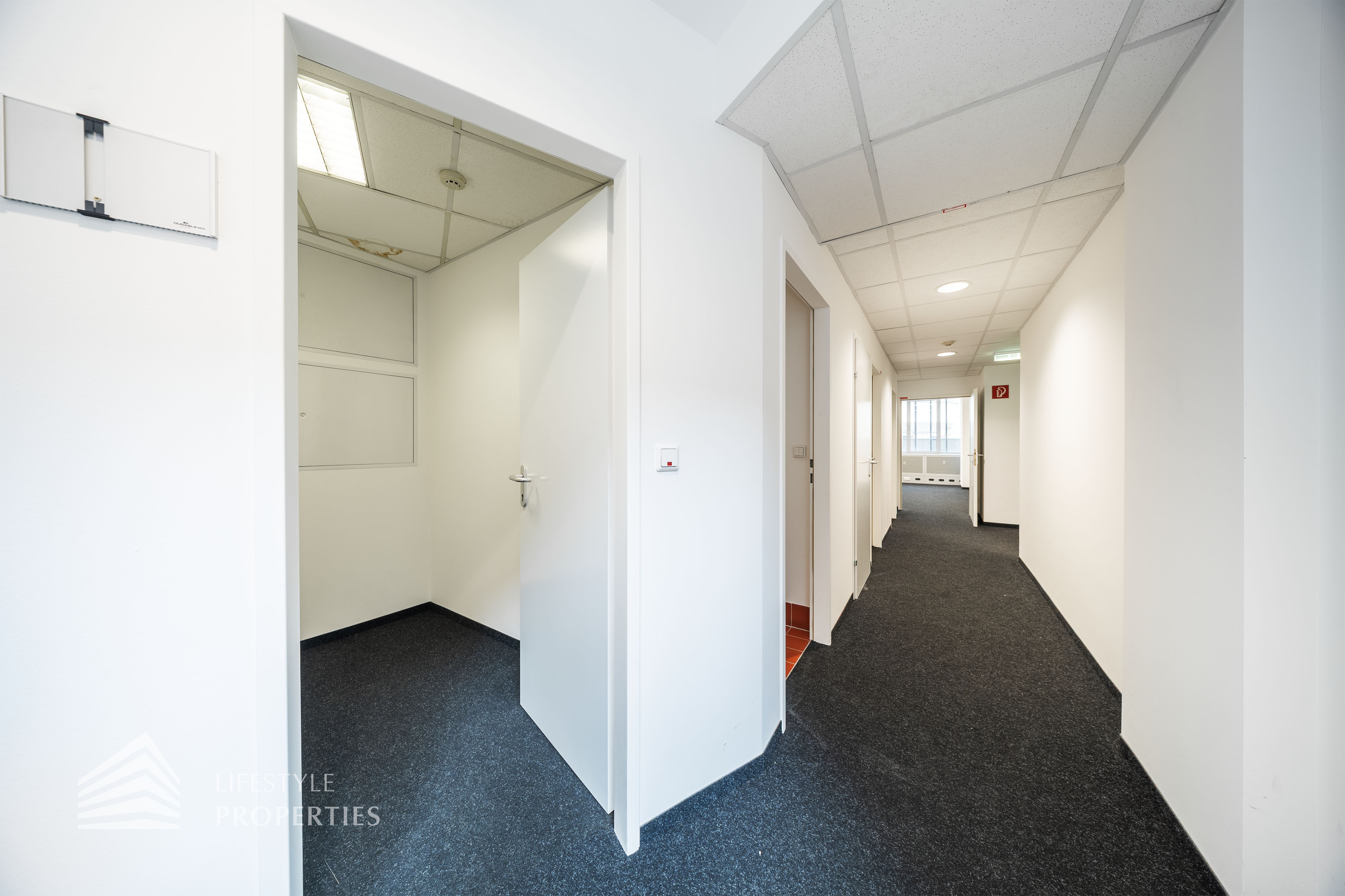 Das Büro befindet sich im 2. Liftstock eines im Jahre 1970 erbauten Gebäudes, welches 2010 komplett umgebaut wurde. Es überzeugt mit einer unglaublichen Nutzfläche von ca. 233 m², welche sich auf 6 großzügige Büroräume, sowie auf eine praktische Teeküche, zwei Abstellräume und Sanitäranlagen aufteilt. Das zusätzliche Highlight, die ca. 31 m² große Terrasse, rundet das Angebot perfekt ab. Beheizt und gekühlt wird mittels Gebläsekonvektoren. Eine Tiefgarage sorgt für sorgenfreies Parken mit Ihrem PKW.