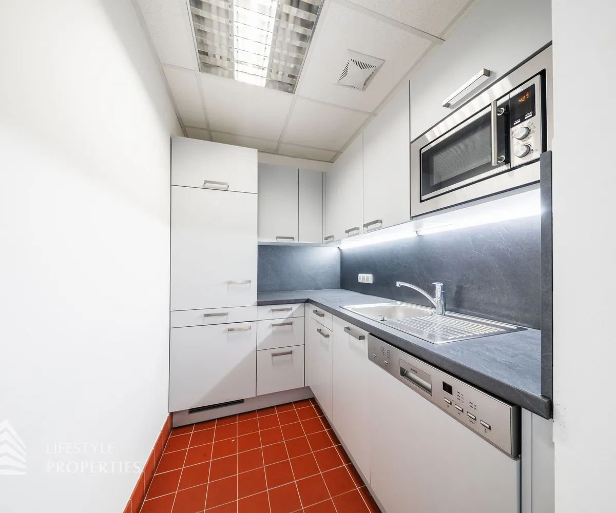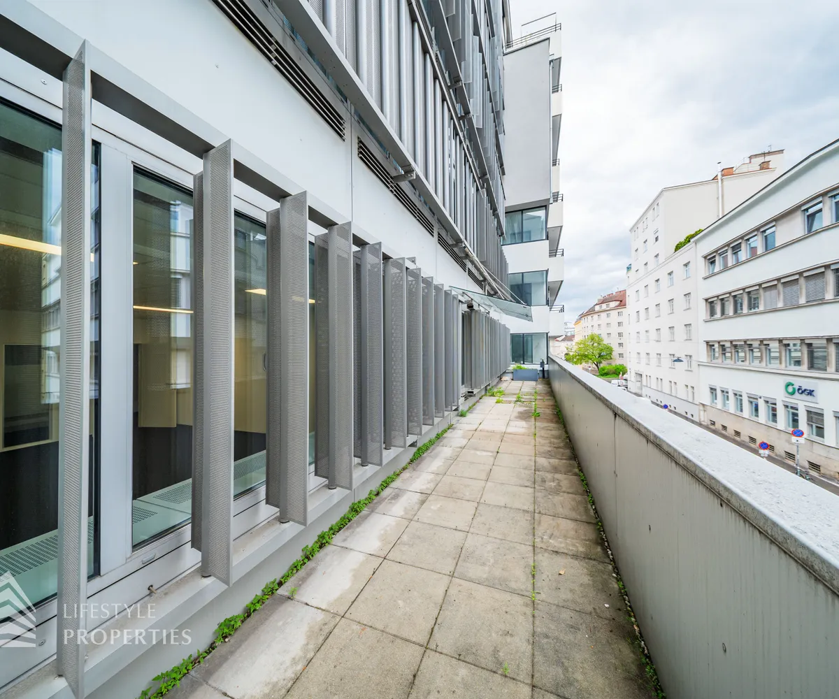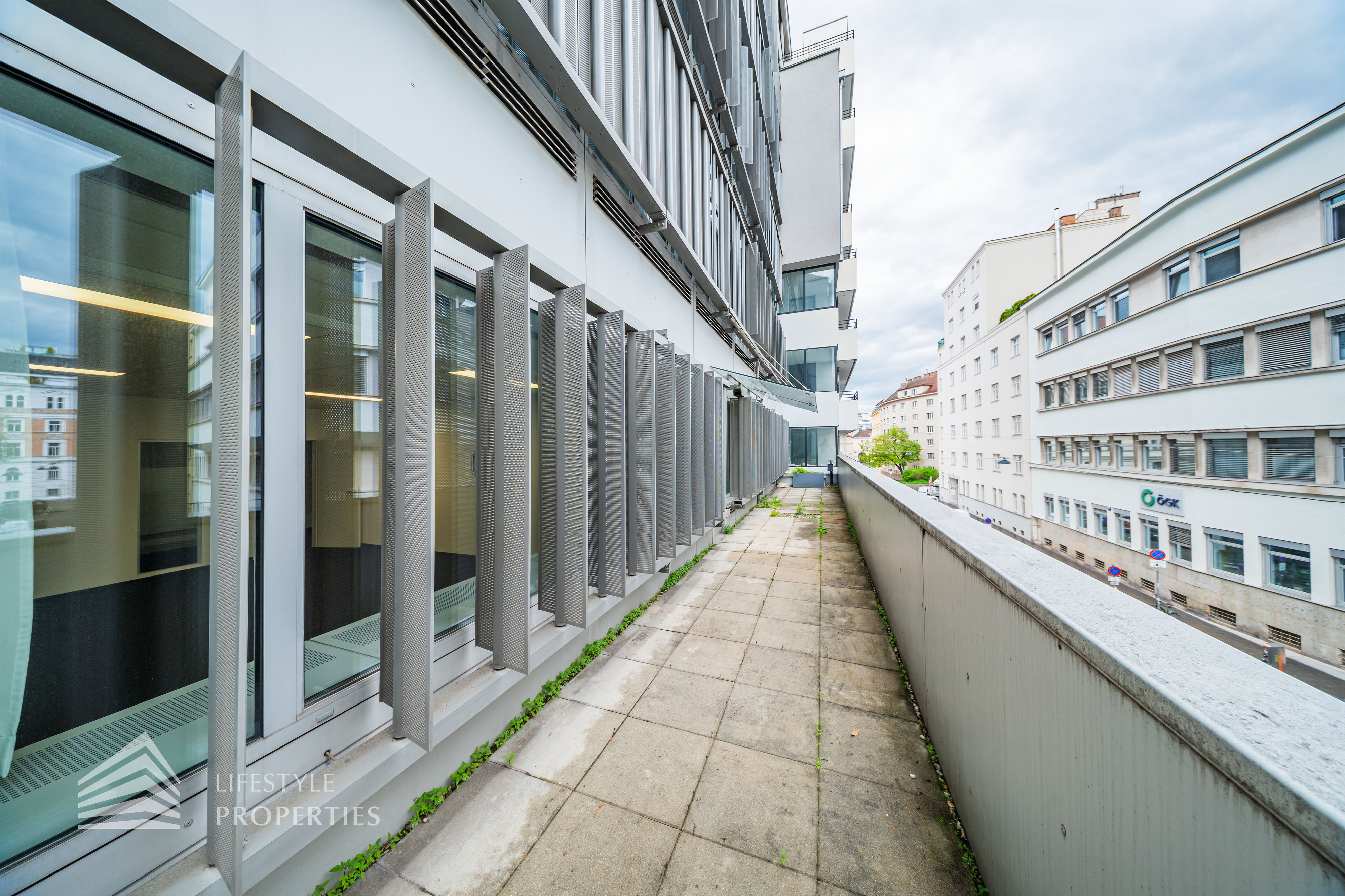 Das Büro befindet sich im 2. Liftstock eines im Jahre 1970 erbauten Gebäudes, welches 2010 komplett umgebaut wurde. Es überzeugt mit einer unglaublichen Nutzfläche von ca. 233 m², welche sich auf 6 großzügige Büroräume, sowie auf eine praktische Teeküche, zwei Abstellräume und Sanitäranlagen aufteilt. Das zusätzliche Highlight, die ca. 31 m² große Terrasse, rundet das Angebot perfekt ab. Beheizt und gekühlt wird mittels Gebläsekonvektoren. Eine Tiefgarage sorgt für sorgenfreies Parken mit Ihrem PKW.