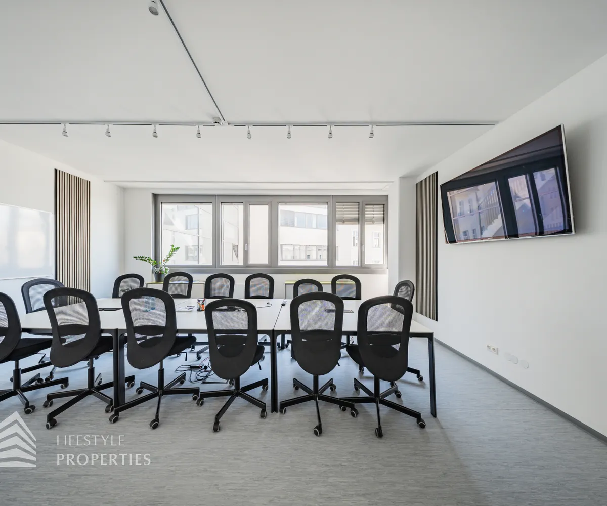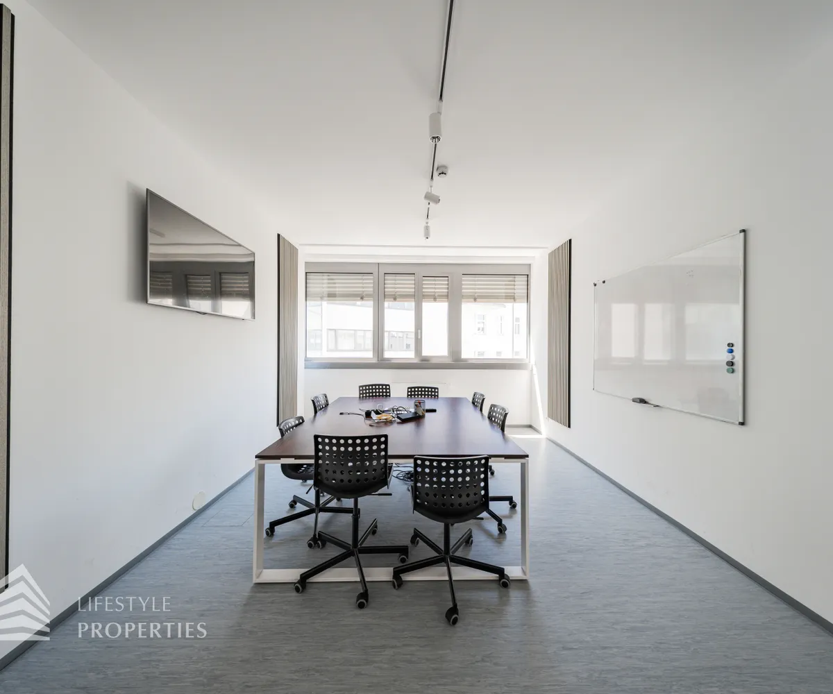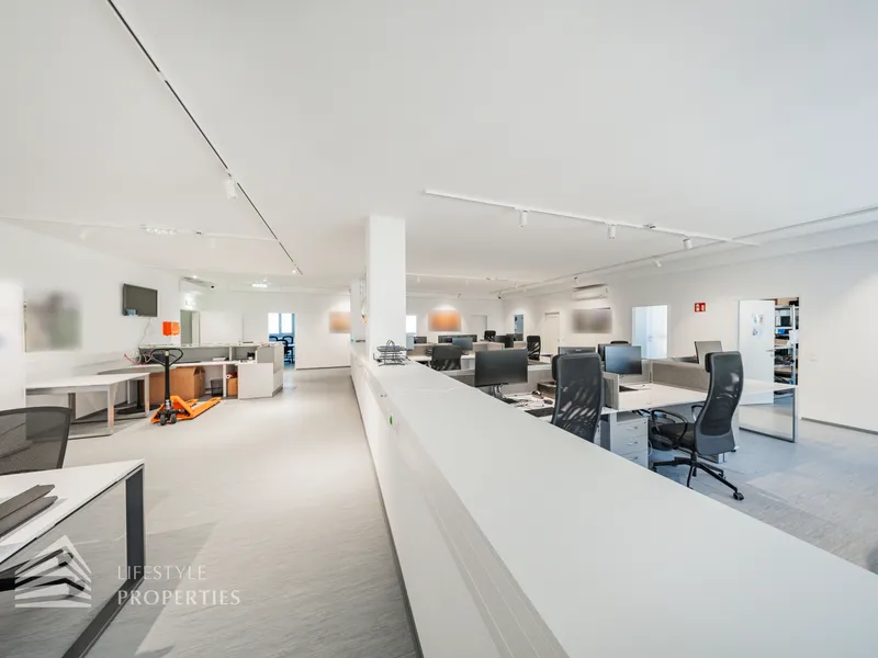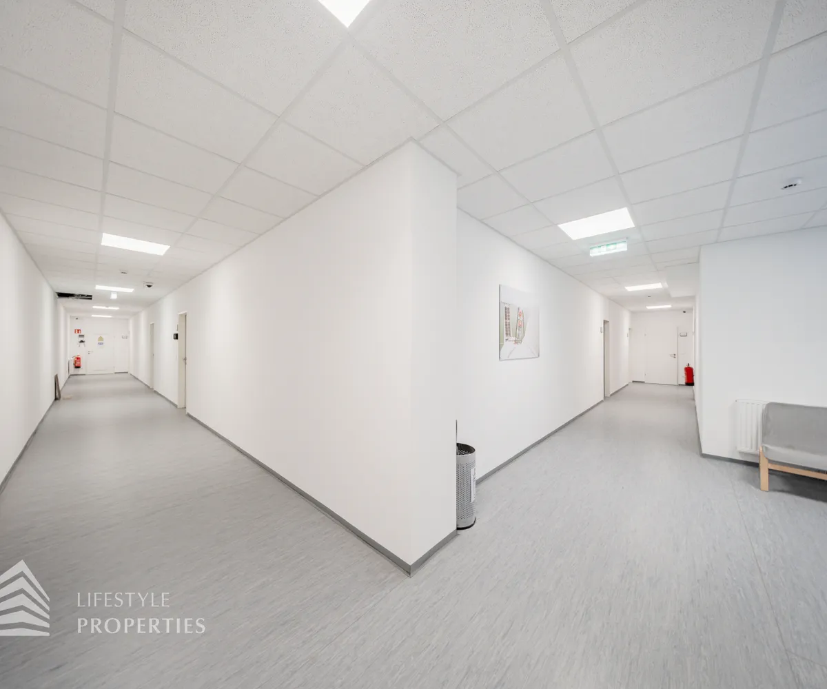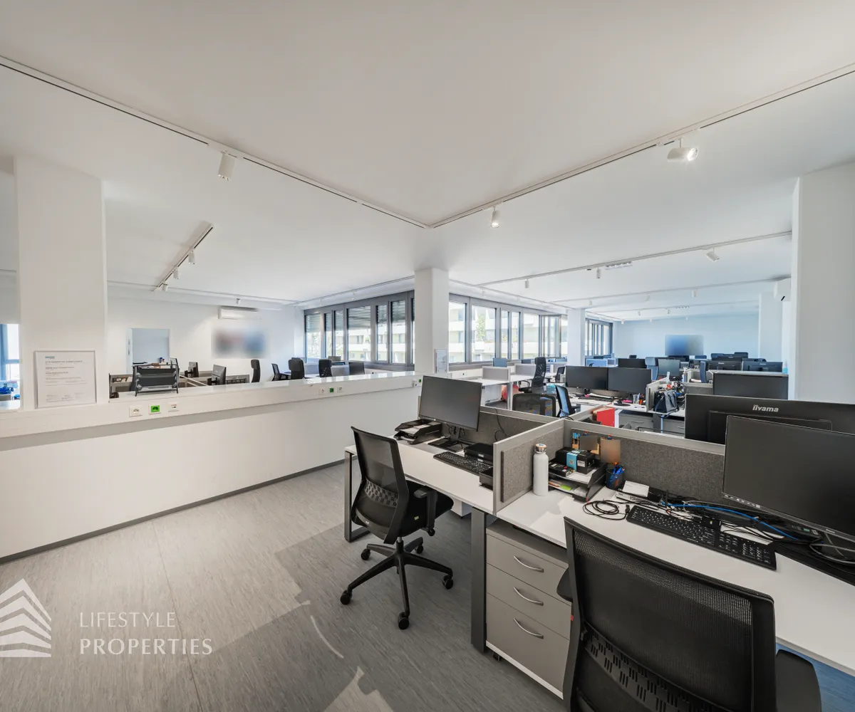 Die moderne Bürofläche befindet sich im 3. Stockwerk eines Neubaugebäudes und verfügt über ca. 697 m². Bei der Ausstattung wird auf moderne Technik und großem Komfort viel Wert gelegt. Dies beinhaltet zum Beispiel die unsichtbare Verkabelung im Boden, die Kameras sowie die Möglichkeit die Räume individuell zu klimatisieren. Die Immobilie besticht durch die ideale Lage und Anbindung an den öffentlichen Verkehr.