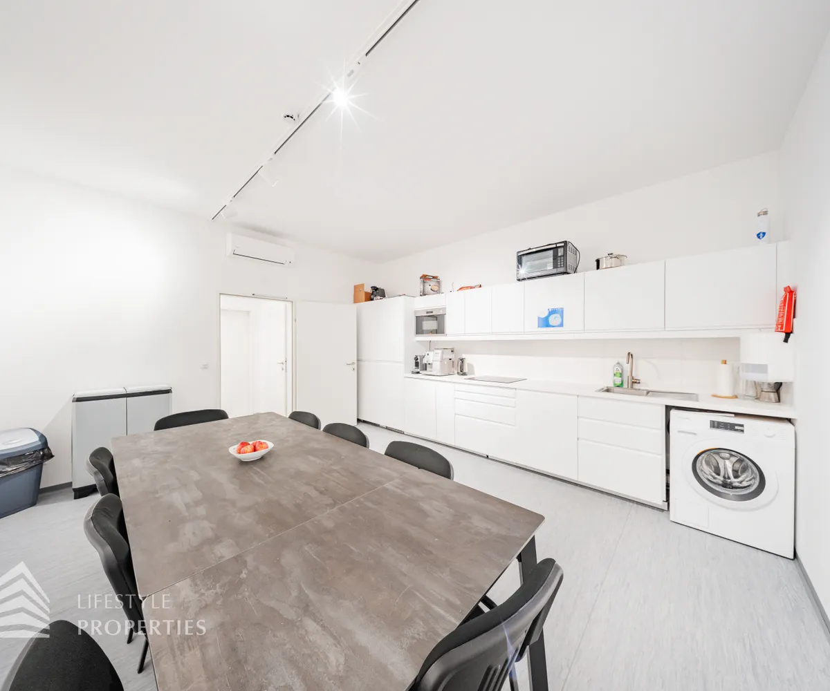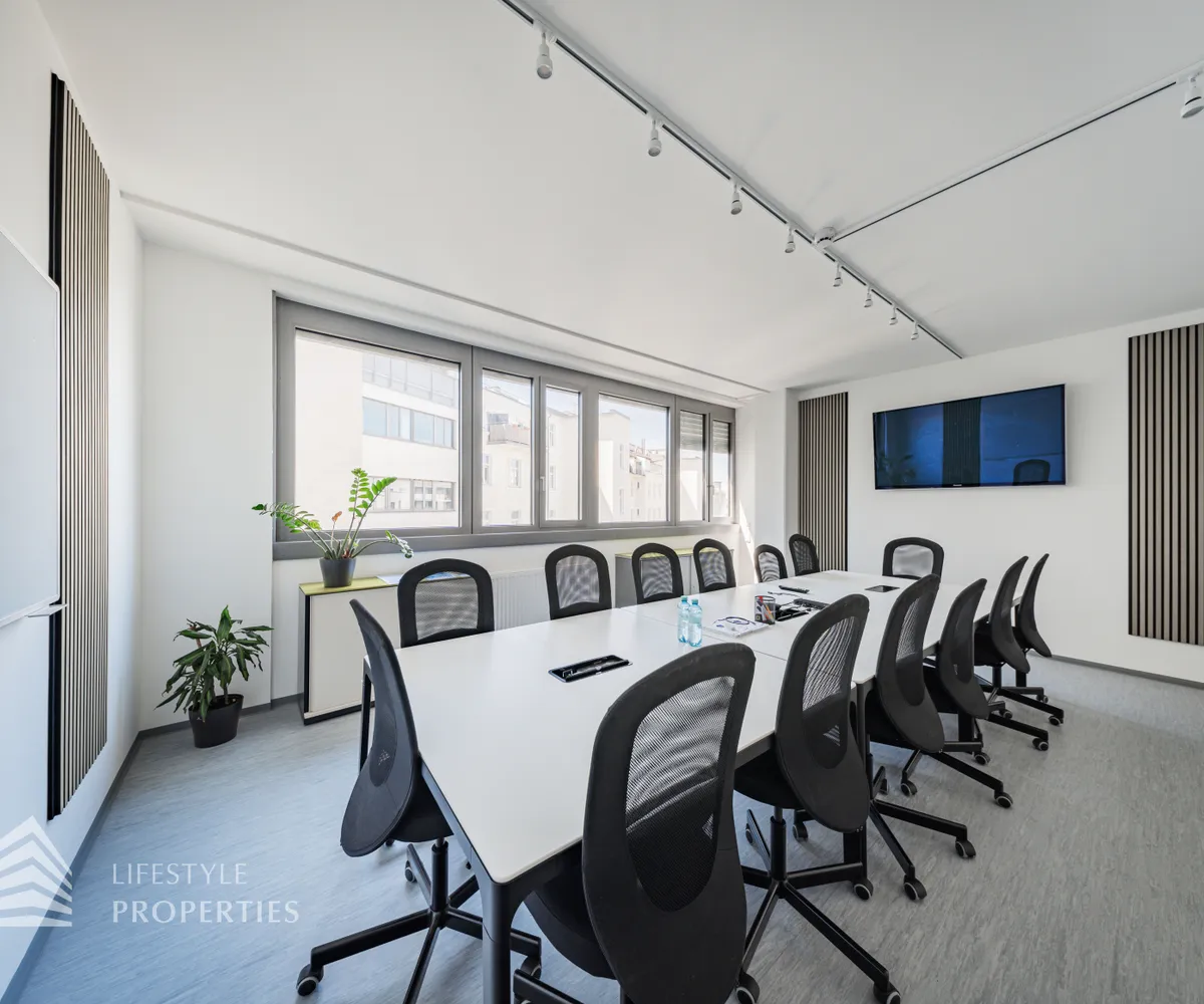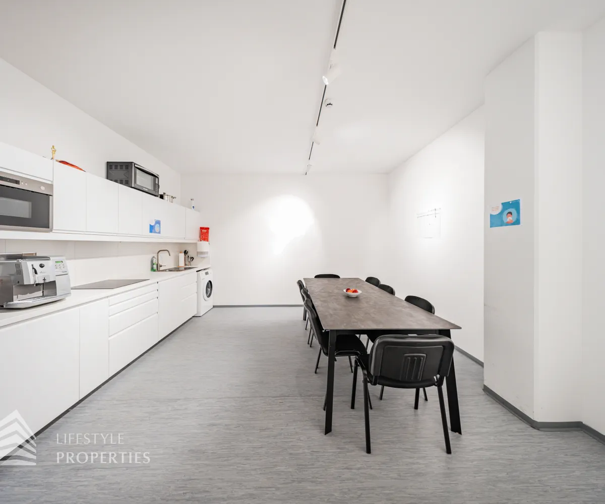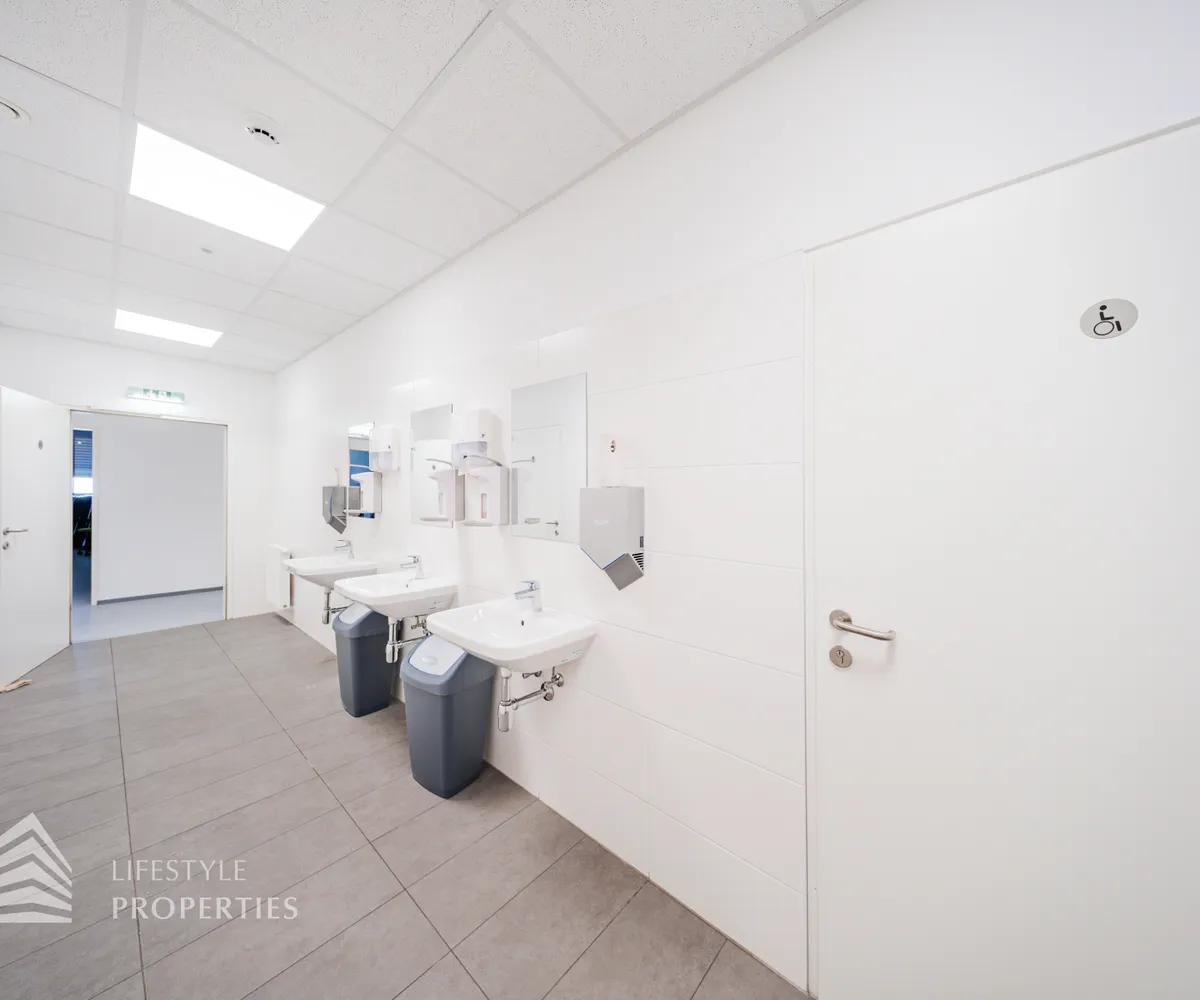Die moderne Bürofläche befindet sich im 3. Stockwerk eines Neubaugebäudes und verfügt über ca. 697 m². Bei der Ausstattung wird auf moderne Technik und großem Komfort viel Wert gelegt. Dies beinhaltet zum Beispiel die unsichtbare Verkabelung im Boden, die Kameras sowie die Möglichkeit die Räume individuell zu klimatisieren. Die Immobilie besticht durch die ideale Lage und Anbindung an den öffentlichen Verkehr.