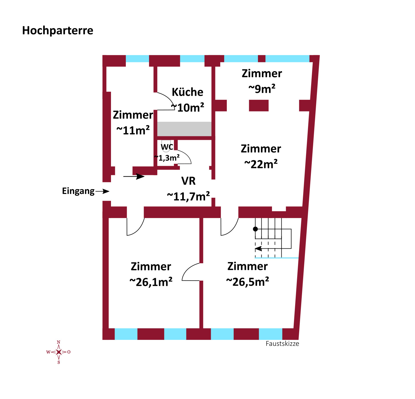 Dieses Unikat befindet sich in einem gepflegtem und saniertem Altbau und umfasst eine ca. 118m2-große Altbauwohnung im Hochparterre und einem damit direkt verbundenen ca. 50m² großem Souterrain, dessen Fläche als Erweiterungsraum für verschiedenste Nutzungsmöglichkeiten offen lässt.