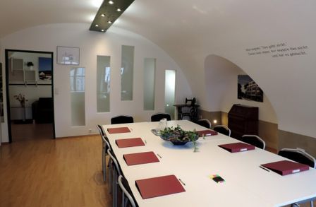Für Seminare oder Besprechungen mit mehreren Teilnehmern (bis zu ca. 20 Personen) kann unser Besprechungsraum (Internet, TV, digitales Whiteboard) gebucht werden. Weiters stehen ein Snack- und Getränkeautomat (kalte und heiße Getränke) und eine Teeküche, sowie eine große Innenhofterrasse zu Verfügung!