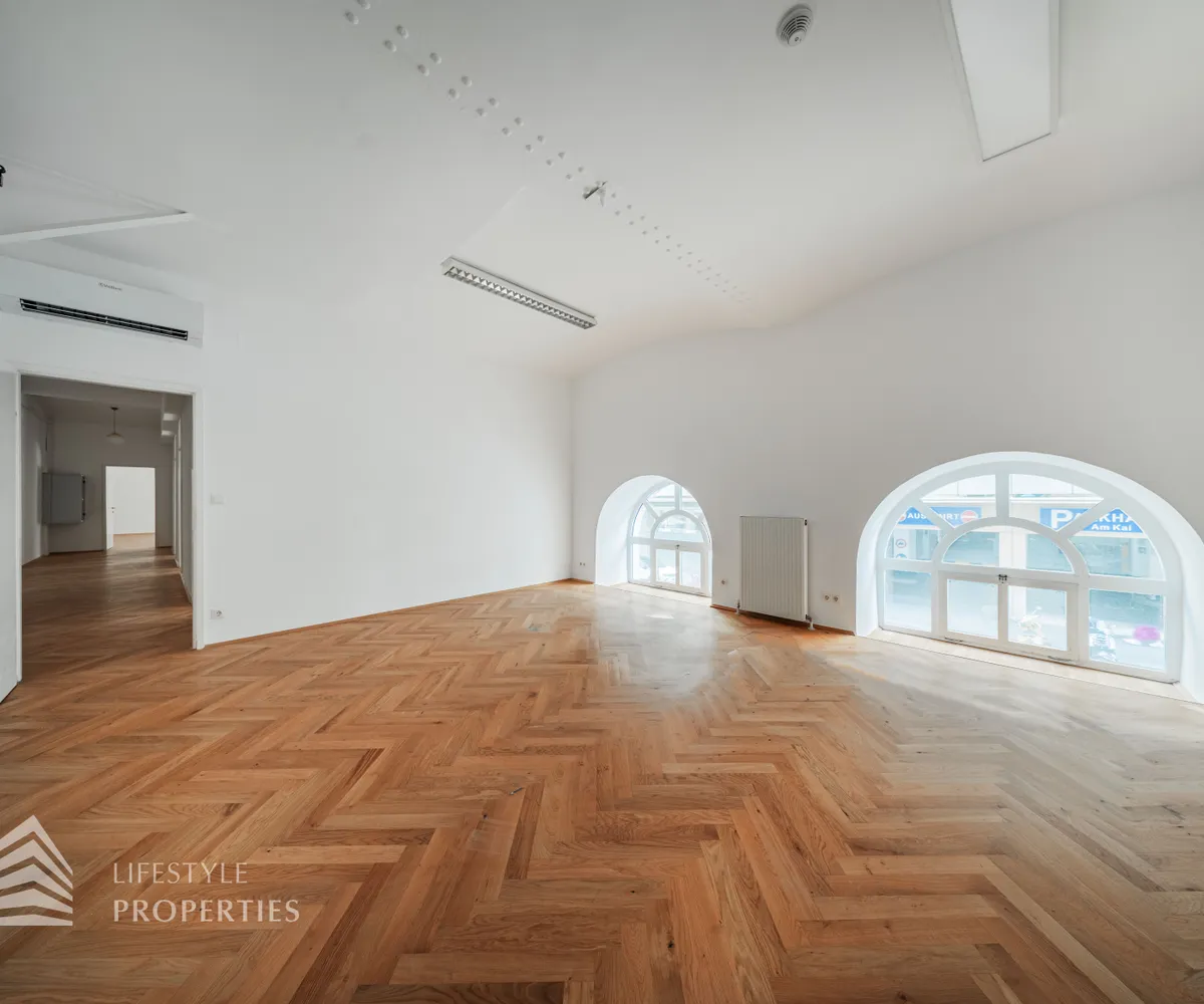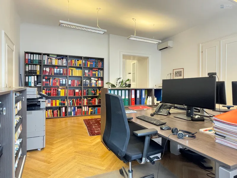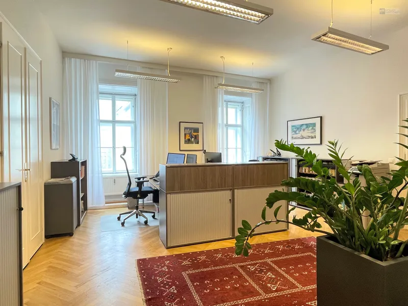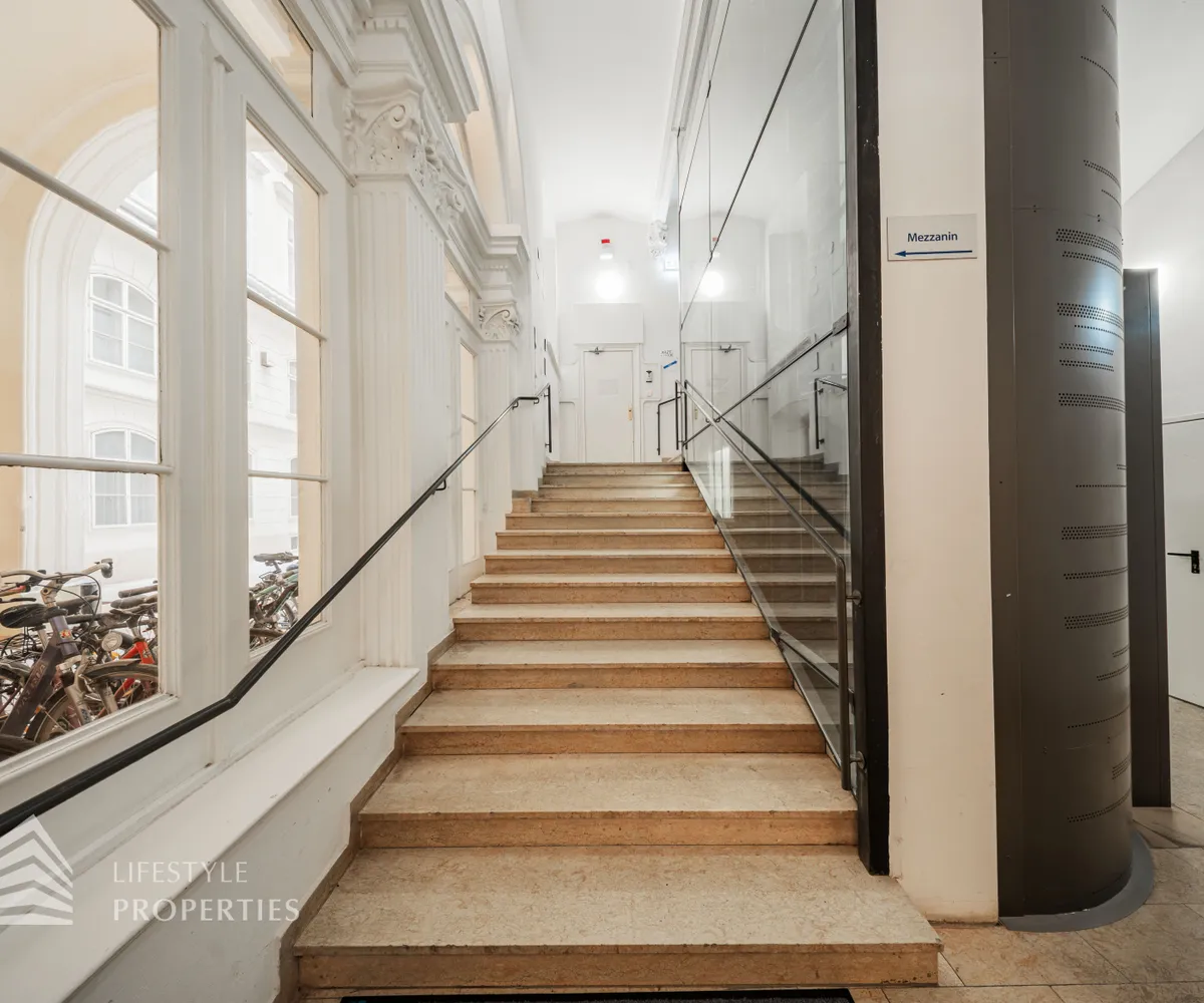 Das Büro verfügt über eine Nutzfläche von ca. 156 m² und befindet sich im Mezzanin eines im Jahre 1897 erbauten Altbauhauses, welches sich in einem gepflegten Zustand befindet.