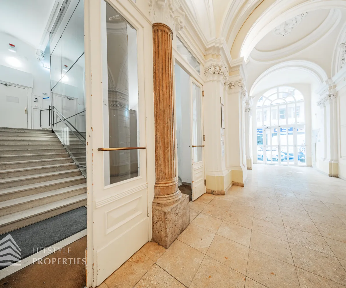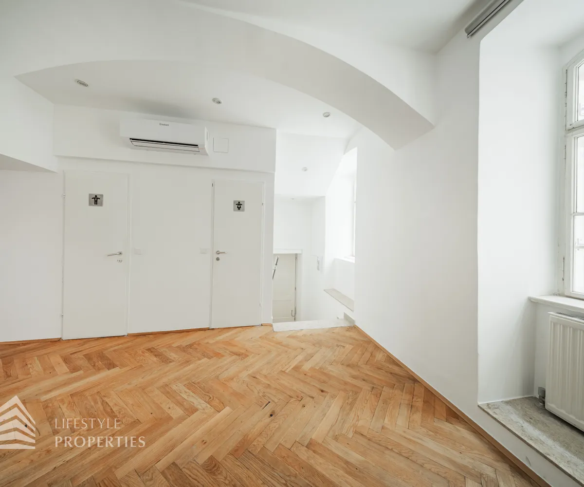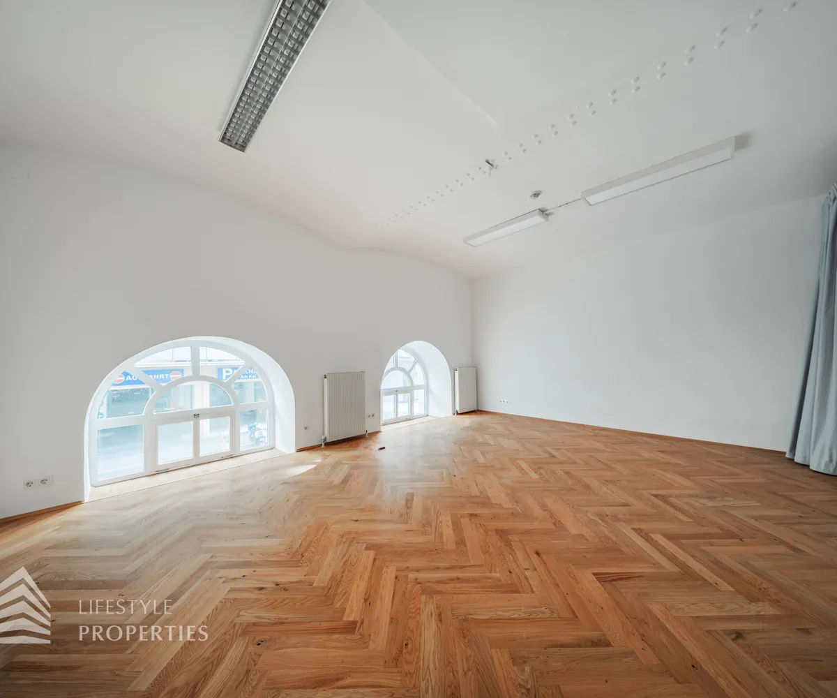 Das Büro verfügt über eine Nutzfläche von ca. 156 m² und befindet sich im Mezzanin eines im Jahre 1897 erbauten Altbauhauses, welches sich in einem gepflegten Zustand befindet.
