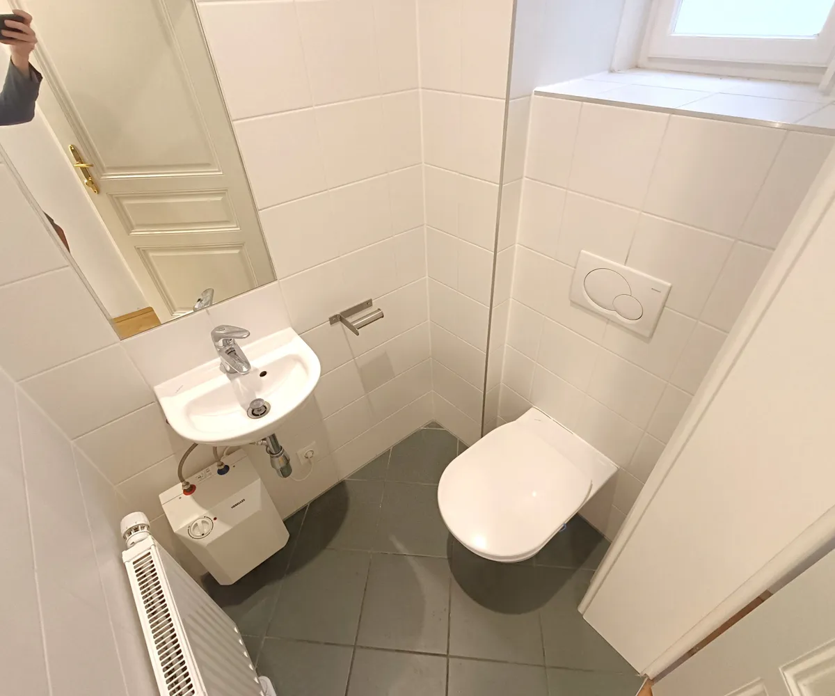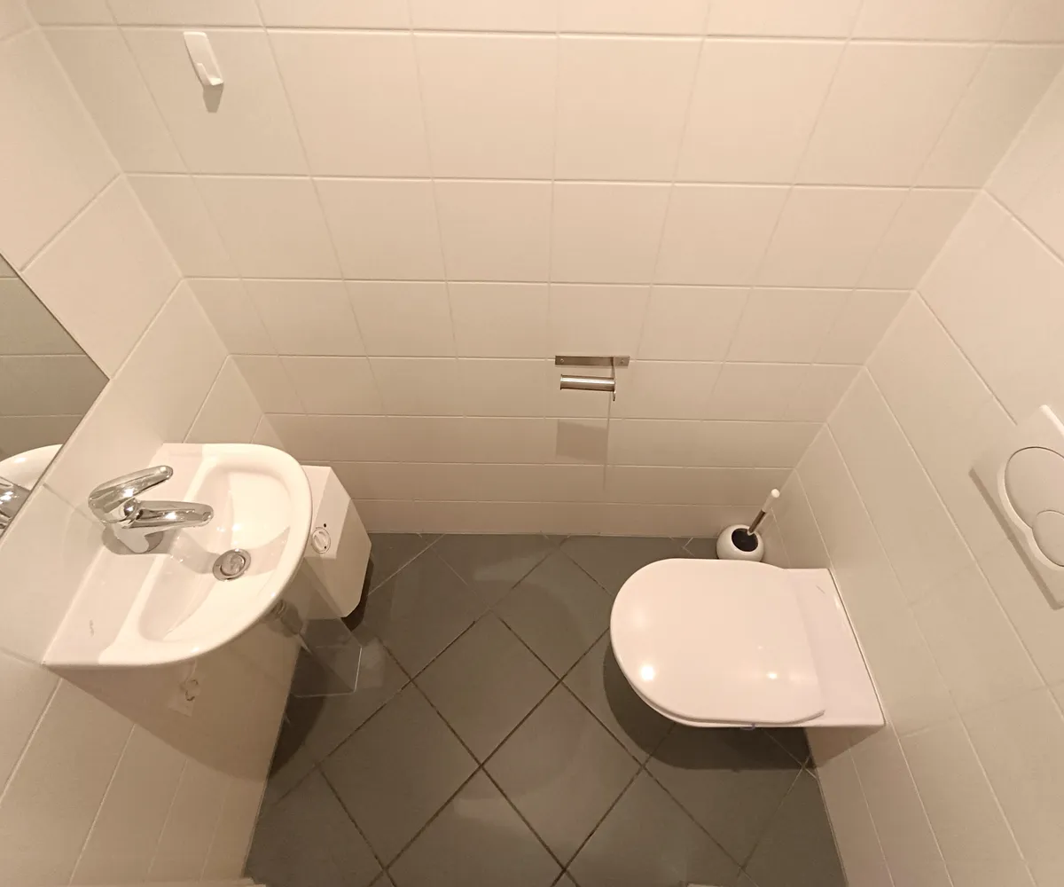 Zwei getrennt begehbare Toiletten mit Handwaschbecken, sowie ein Garderobenbereich runden das Angebot ab und im großzügigen Vorraum können Sie den Empfangsbereich einrichten und Ihre Kunden in stilvollem Ambiente begrüßen.
