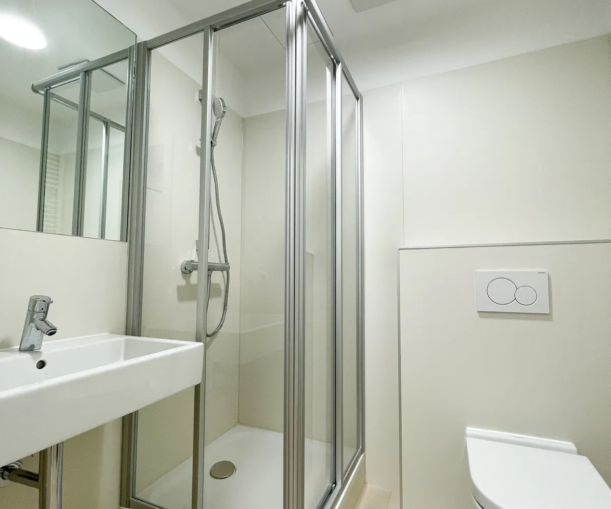 Gemeinschaftliche Damen- und Herren-WCs auf jedem Stockwerk