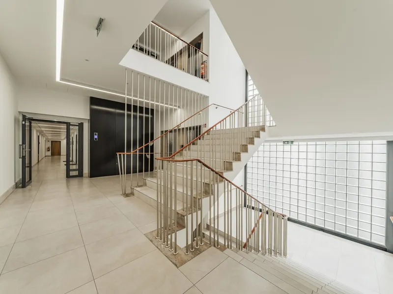 Repräsentativer Eingangsbereich mit modernem Aufzugssystem