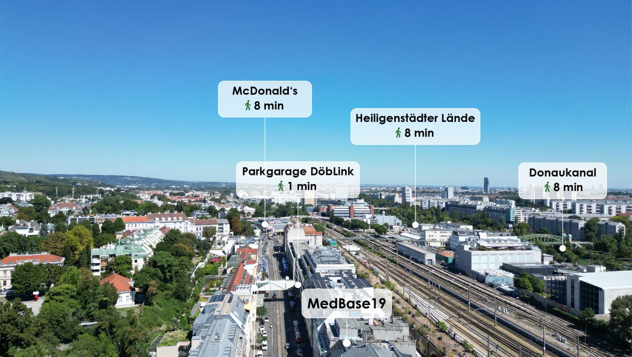 An der Adresse Heiligenstädter Straße 38, direkt gegenüber der Privatklinik Döbling, befindet sich das MedBase19, welches auf 4 Geschoßen zahlreiche Ordinationseinheiten bietet. Die äußerst repräsentative Lage auf der Heiligenstädter Straße direkt gegenüber der Privatklinik, nur 4 Gehminuten von der U4/U6 Station Spittelau sowie der Straßenbahnhaltestelle D entfernt und in unmittelbarer Nachbarschaft zahlreicher Betriebe und Büros, garantiert hohe Frequenz und beste Patienten-Zielgruppen.