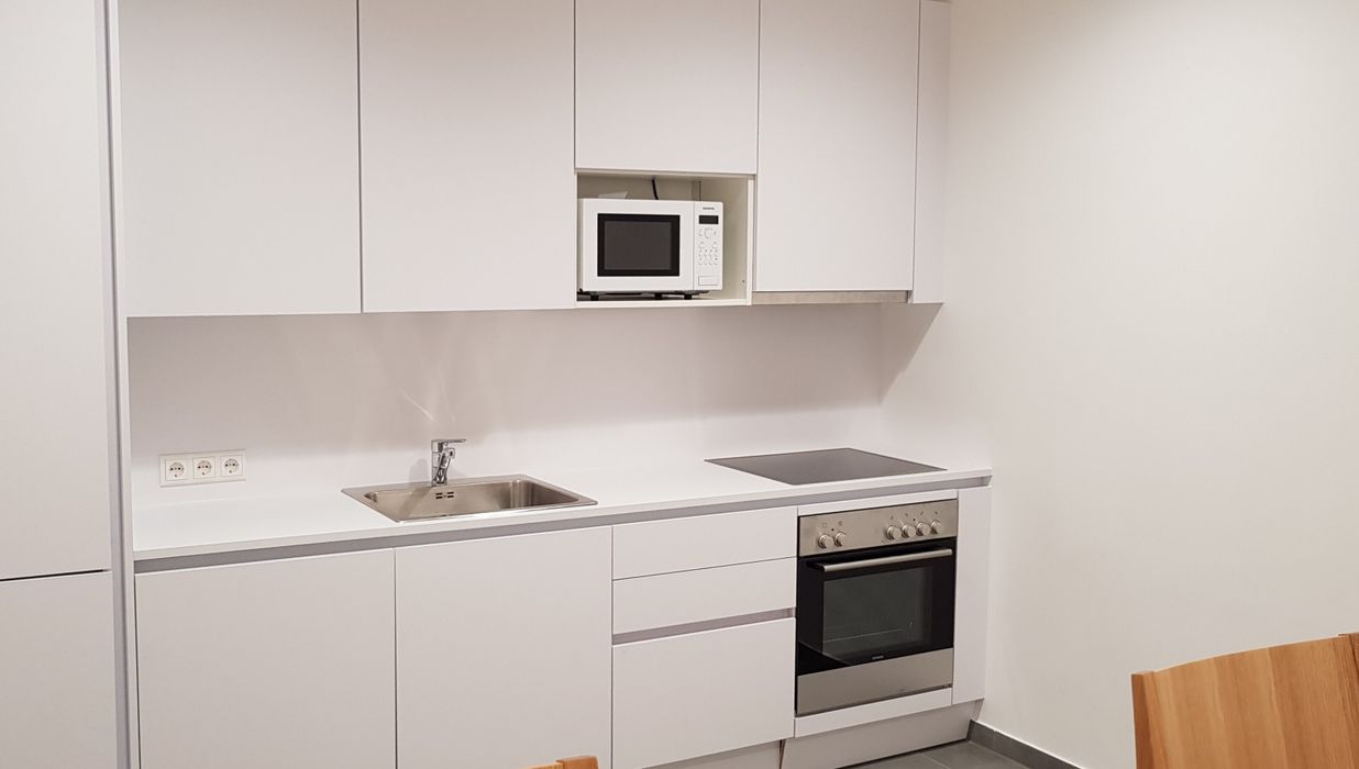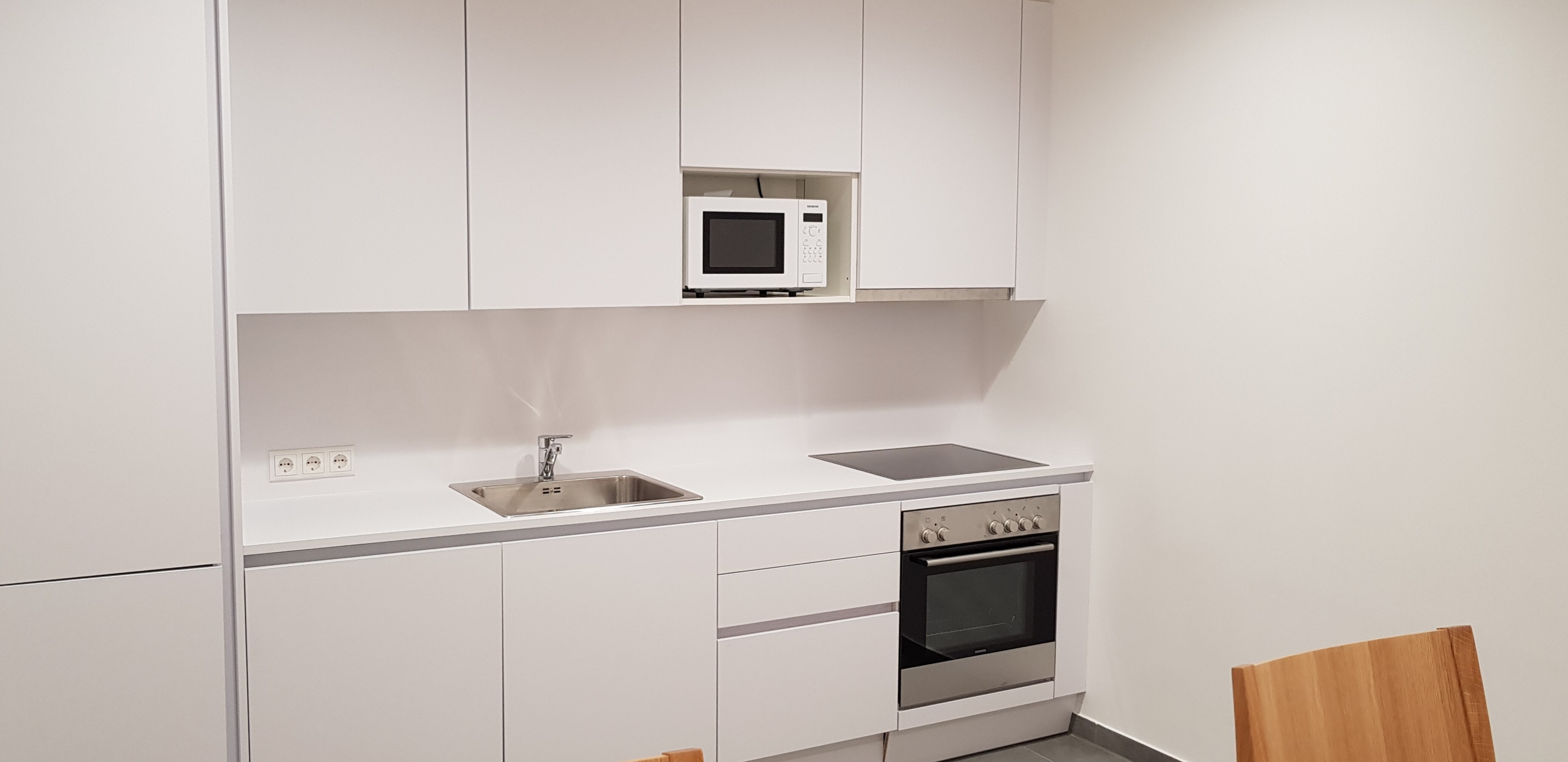 Eine vollausgestattete Küche, der Warteraum und die Sanitäranlagen werden gemeinschaftlich genutzt.